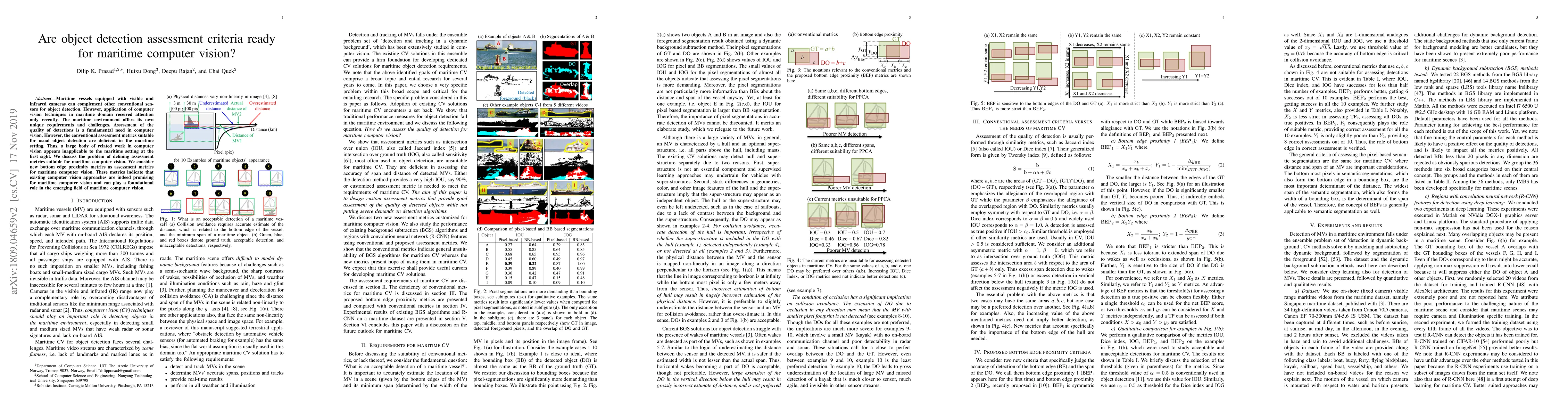 This paper explores the inadequacy of conventional object detection assessment criteria for maritime computer vision and proposes new bottom edge proximity metrics to better evaluate detections in the unique maritime environment, highlighting the potential of existing computer vision techniques for this emerging field.