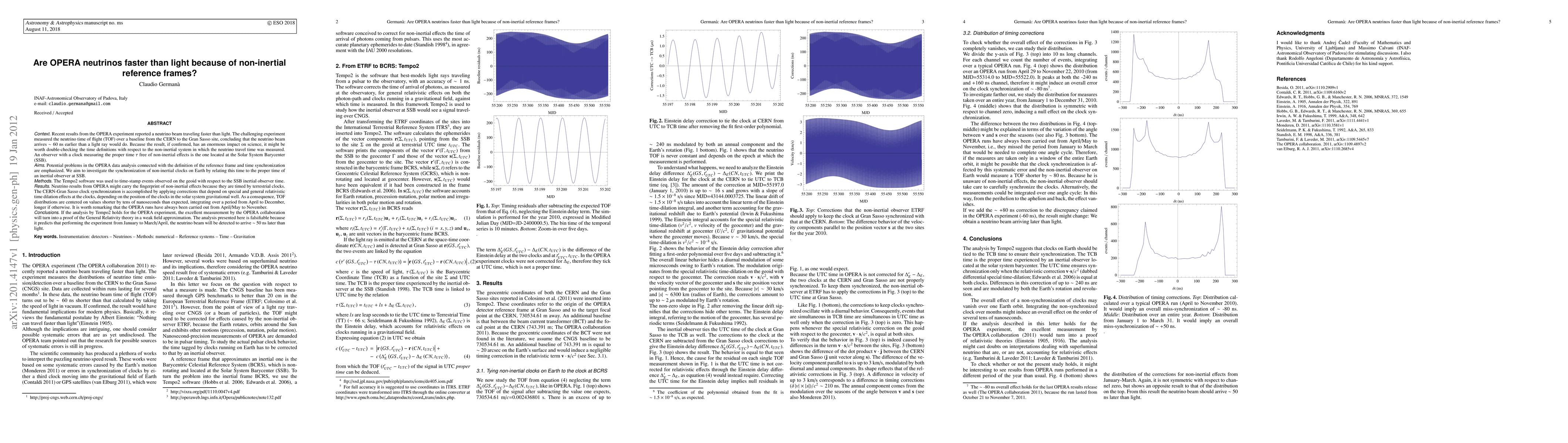 This work distinguishes itself by examining the impact of non-inertial reference frames on neutrino time-of-flight measurements, proposing that unaccounted relativistic corrections could explain apparent superluminal speeds.