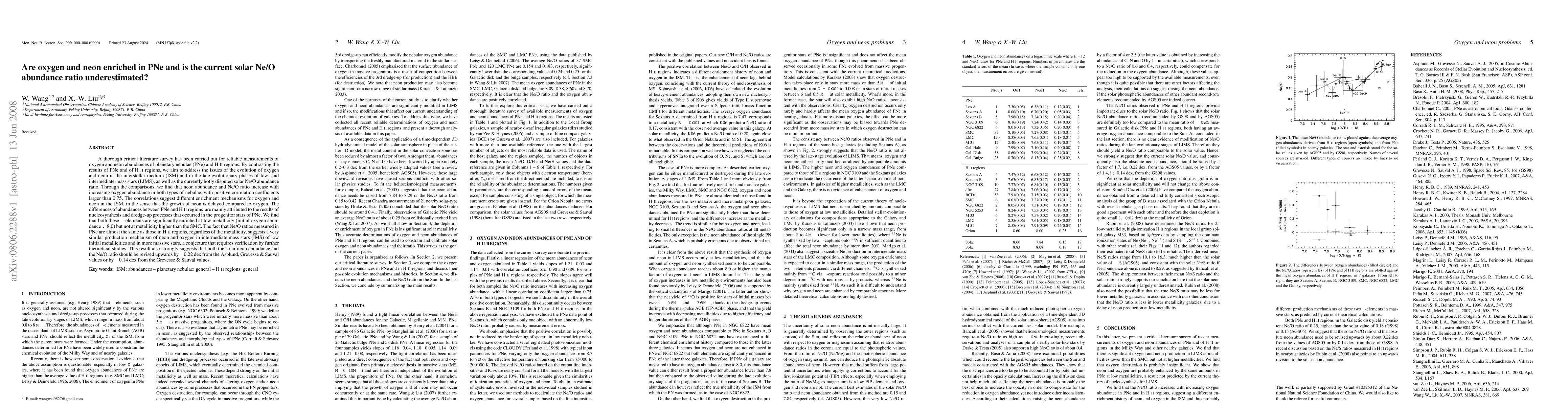 Research suggests that oxygen and neon abundances in planetary nebulae increase with each other, indicating different enrichment mechanisms for these elements. This implies that the solar Ne/O abundance ratio should be revised upwards.