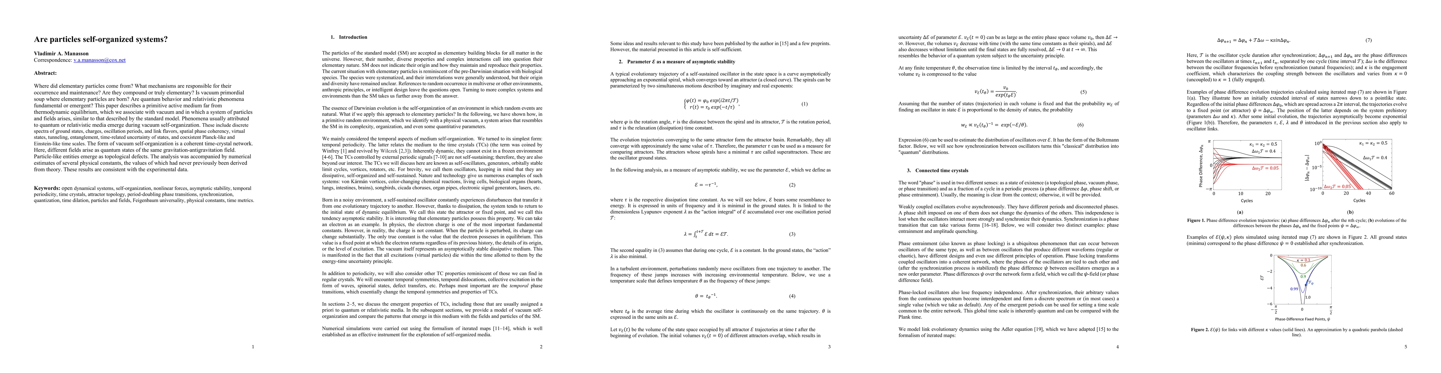 This paper proposes that elementary particles emerge from the self-organization of a primitive active vacuum medium, leading to phenomena typically attributed to quantum and relativistic physics, and suggests that particles are topological defects in a coherent time-crystal network. Numerical estimates derived from this model align with experimental data.