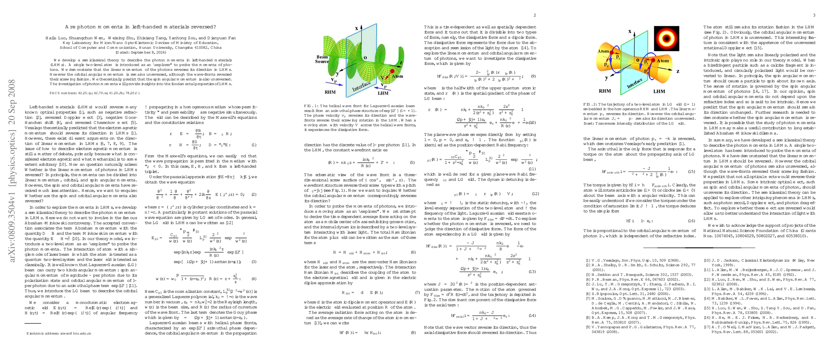 This paper develops a semiclassical theory to explore photon momenta in left-handed materials, finding that linear momentum reverses direction while orbital and spin angular momenta do not. This investigation sheds light on the fundamental properties of left-handed materials.
