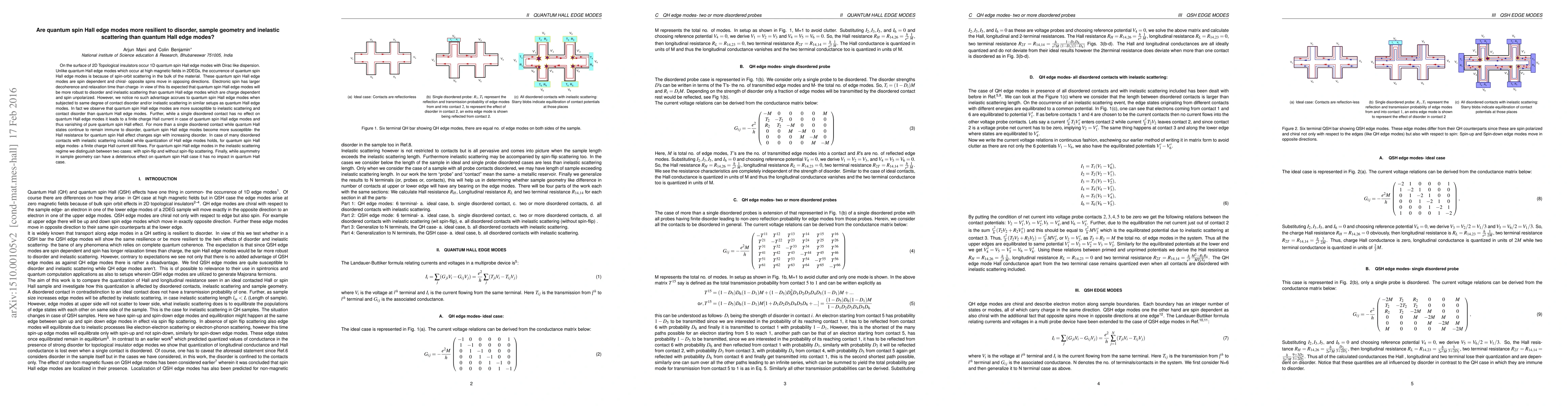 This research investigates whether quantum spin Hall (QSH) edge modes are more resilient to disorder, sample geometry, and inelastic scattering compared to quantum Hall (QH) edge modes. Contrary to expectations, QSH edge modes exhibit greater susceptibility to disorder and inelastic scattering, leading to the vanishing of the pure quantum spin Hall effect, while QH edge modes remain more robust.