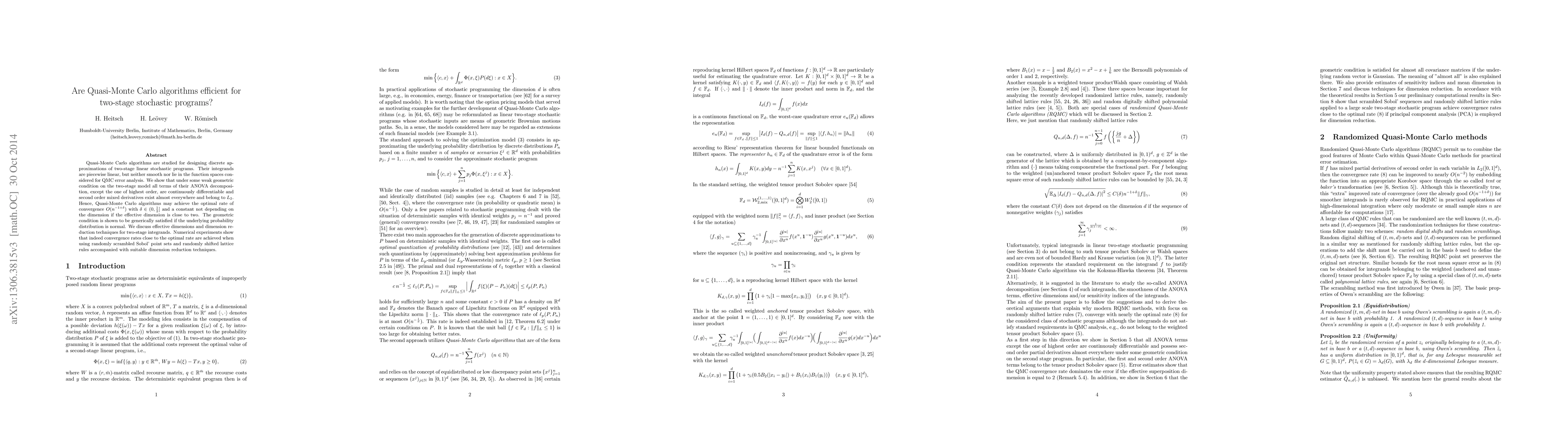 This paper investigates the efficiency of Quasi-Monte Carlo algorithms for two-stage stochastic programs, demonstrating that under certain geometric conditions, these algorithms can achieve optimal convergence rates. Numerical experiments confirm the effectiveness of these methods in practice.
