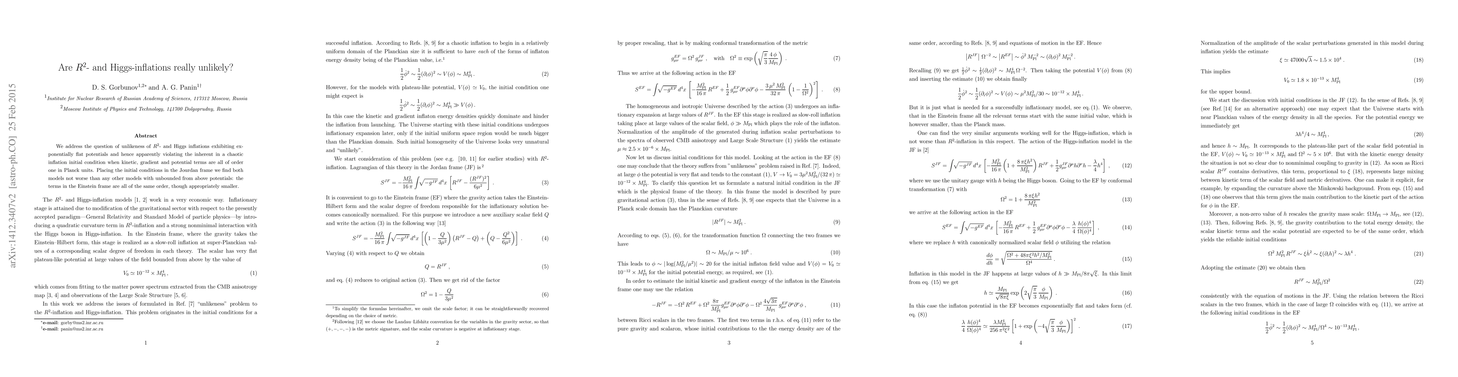 We address the question of unlikeness of $R^2$- and Higgs inflations exhibiting exponentially flat potentials and hence apparently violating the inherent in a chaotic inflation initial condition when kinetic, gradient and potential terms are all of order one in Planck units. Placing the initial conditions in the Jourdan frame we find both models not worse than any other models with unbounded from above potentials: the terms in the Einstein frame are all of the same order, though appropriately smaller.