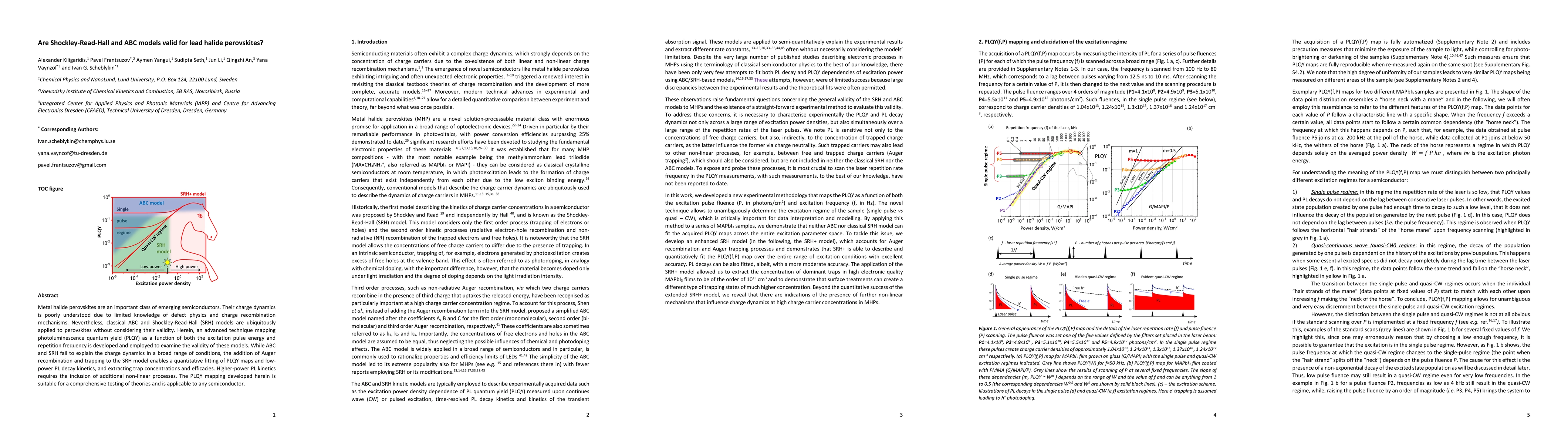 This paper examines the applicability of classical ABC and Shockley-Read-Hall (SRH) models for charge dynamics in lead halide perovskites, finding both models inadequate without modifications. The study introduces a PLQY mapping technique to validate these models, revealing that incorporating Auger recombination and trapping into the SRH model provides better quantitative fitting.