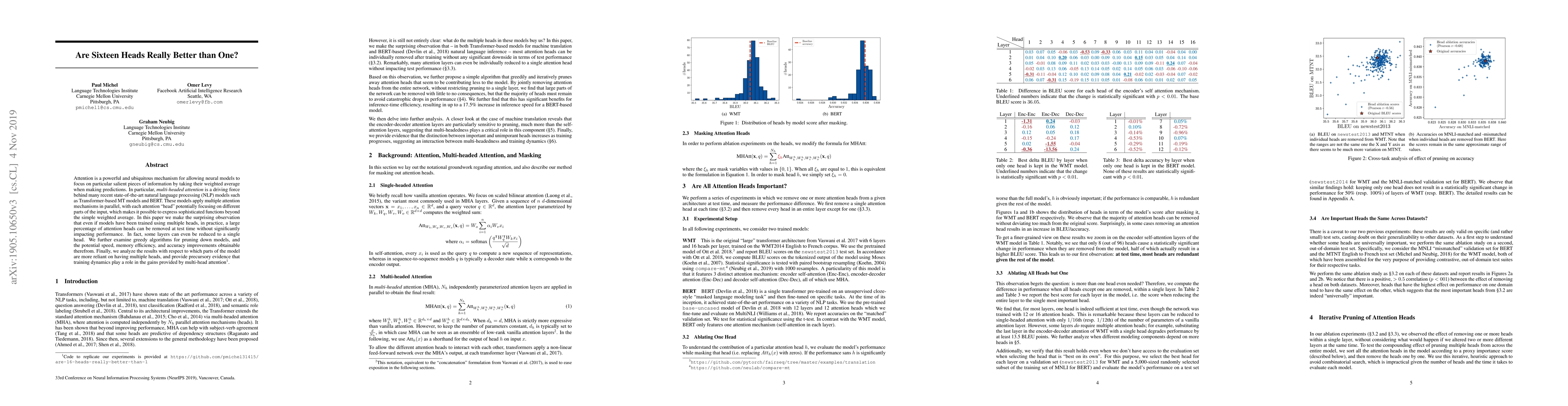 This paper investigates the effectiveness of multi-headed attention in NLP models, finding that many attention heads can be removed without significant performance loss, suggesting potential for efficiency gains. The study also explores pruning techniques and provides insights into which model parts benefit most from multiple heads.