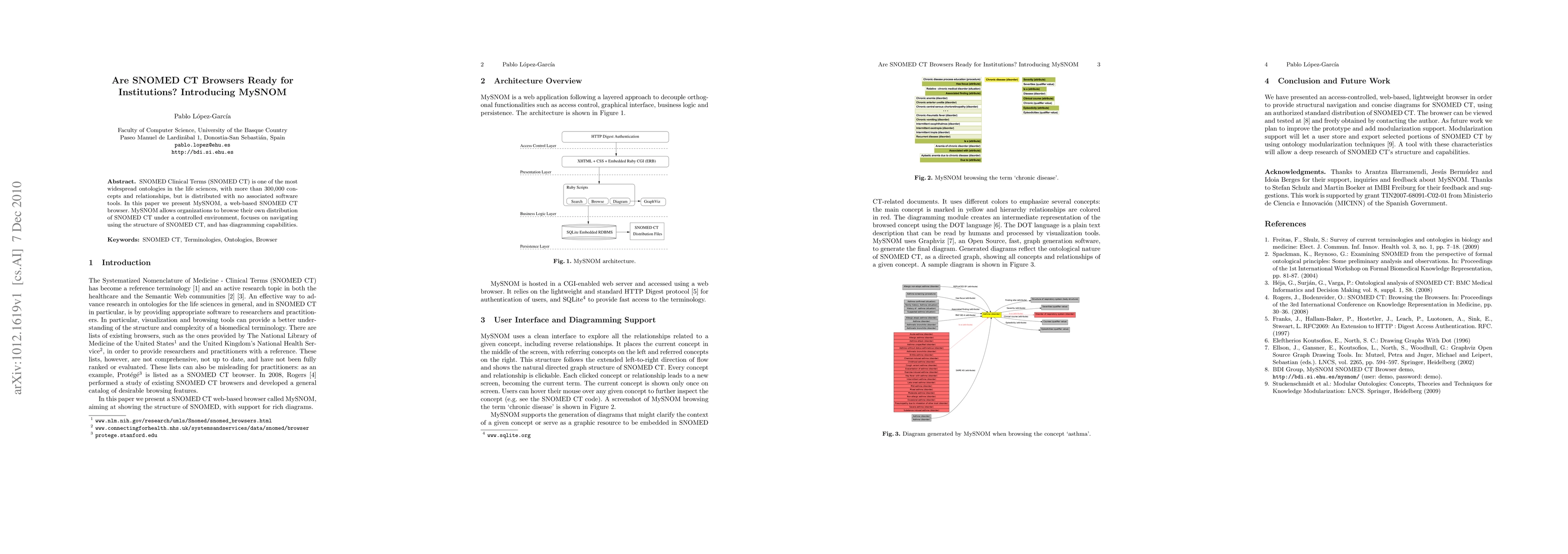 This paper introduces MySNOM, a web-based browser for SNOMED CT, designed to enable institutions to navigate their own SNOMED CT distributions in a controlled environment. MySNOM emphasizes SNOMED CT's structure and includes diagramming features for enhanced usability.