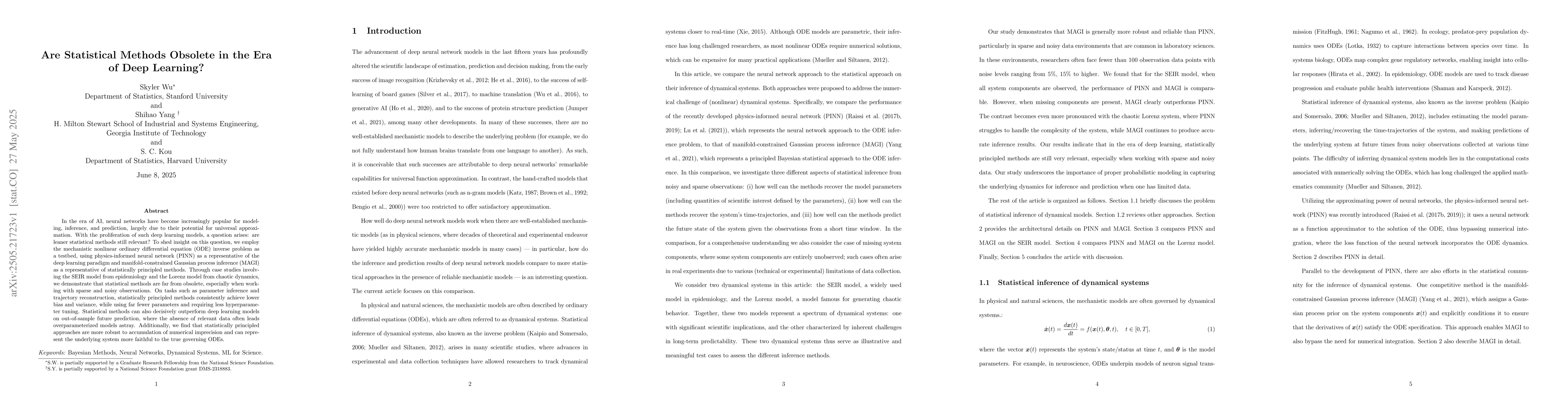 In the era of AI, neural networks have become increasingly popular for modeling, inference, and prediction, largely due to their potential for universal approximation. With the proliferation of such deep learning models, a question arises: are leaner statistical methods still relevant? To shed insight on this question, we employ the mechanistic nonlinear ordinary differential equation (ODE) inverse problem as a testbed, using physics-informed neural network (PINN) as a representative of the deep learning paradigm and manifold-constrained Gaussian process inference (MAGI) as a representative of statistically principled methods. Through case studies involving the SEIR model from epidemiology and the Lorenz model from chaotic dynamics, we demonstrate that statistical methods are far from obsolete, especially when working with sparse and noisy observations. On tasks such as parameter inference and trajectory reconstruction, statistically principled methods consistently achieve lower bias and variance, while using far fewer parameters and requiring less hyperparameter tuning. Statistical methods can also decisively outperform deep learning models on out-of-sample future prediction, where the absence of relevant data often leads overparameterized models astray. Additionally, we find that statistically principled approaches are more robust to accumulation of numerical imprecision and can represent the underlying system more faithful to the true governing ODEs.