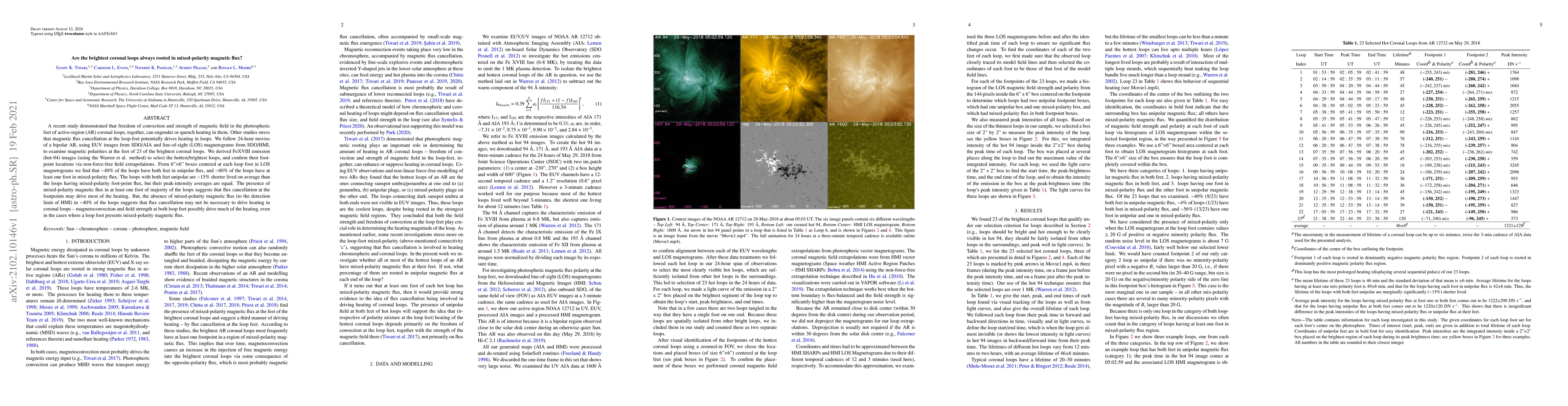 This study investigates the magnetic polarity of the feet of the brightest coronal loops in an active region, finding that while most loops have at least one foot in mixed-polarity flux, around 40% have both feet in unipolar flux. The presence of mixed-polarity flux suggests flux cancellation may drive heating, but the shorter lifespan of unipolar loops indicates other mechanisms like magnetoconvection and field strength also play a significant role.
