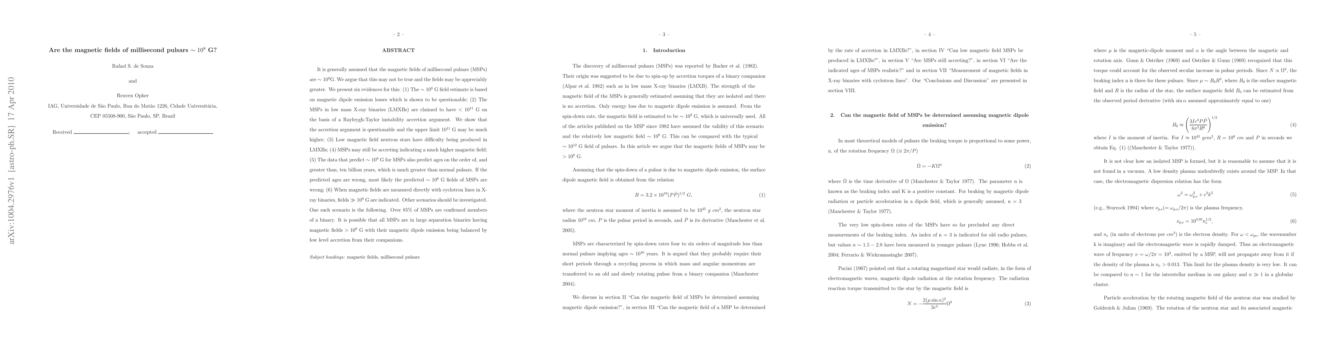 This paper challenges the conventional assumption that the magnetic fields of millisecond pulsars (MSPs) are around $10^{8}$ G, presenting six arguments suggesting the fields may be significantly higher. The authors propose that the magnetic fields could be much greater than previously thought, based on various lines of evidence including questionable assumptions in current field estimates and the possibility of ongoing accretion in MSPs.