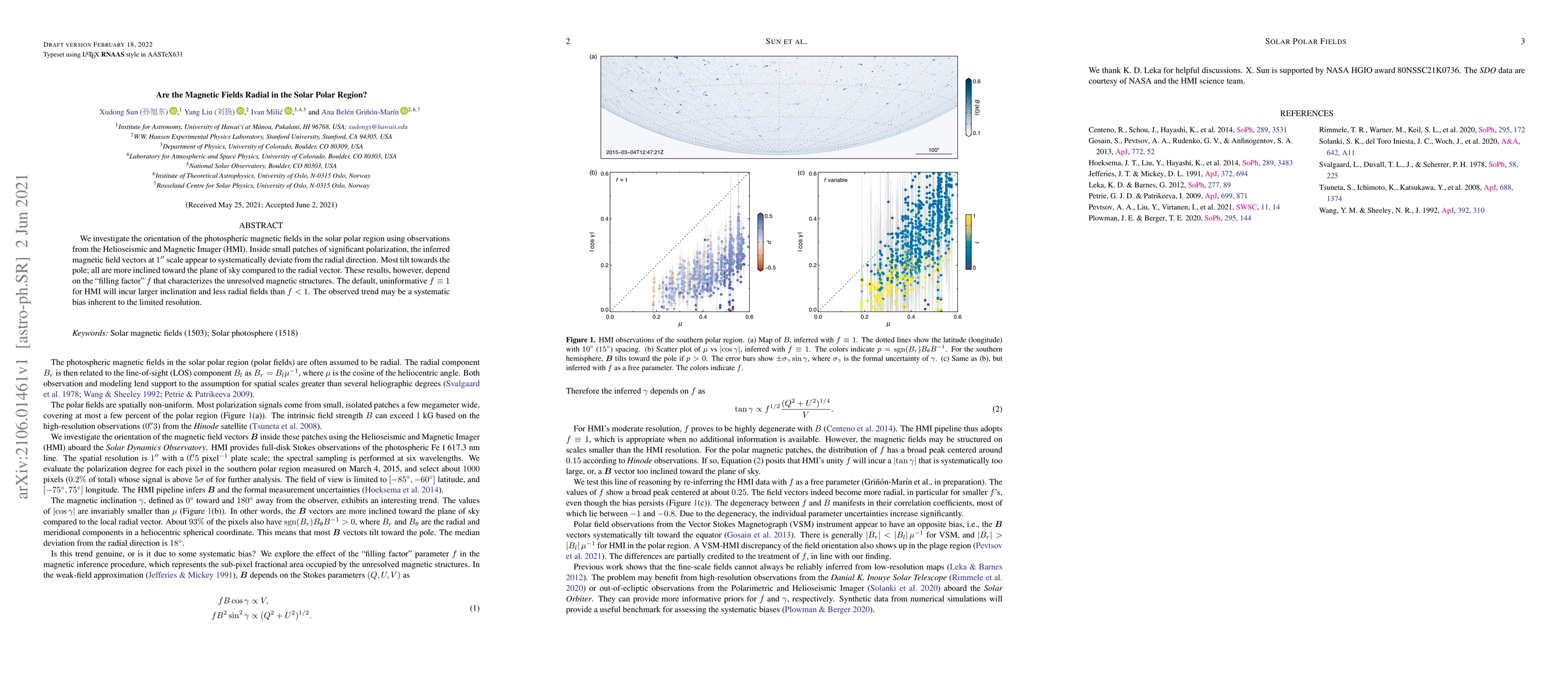 This study using HMI observations finds that photospheric magnetic fields in the solar polar region deviate from the radial direction, tilting towards the pole and the plane of sky. The degree of deviation depends on the "filling factor," with lower values suggesting more radial fields, indicating potential resolution-related biases.