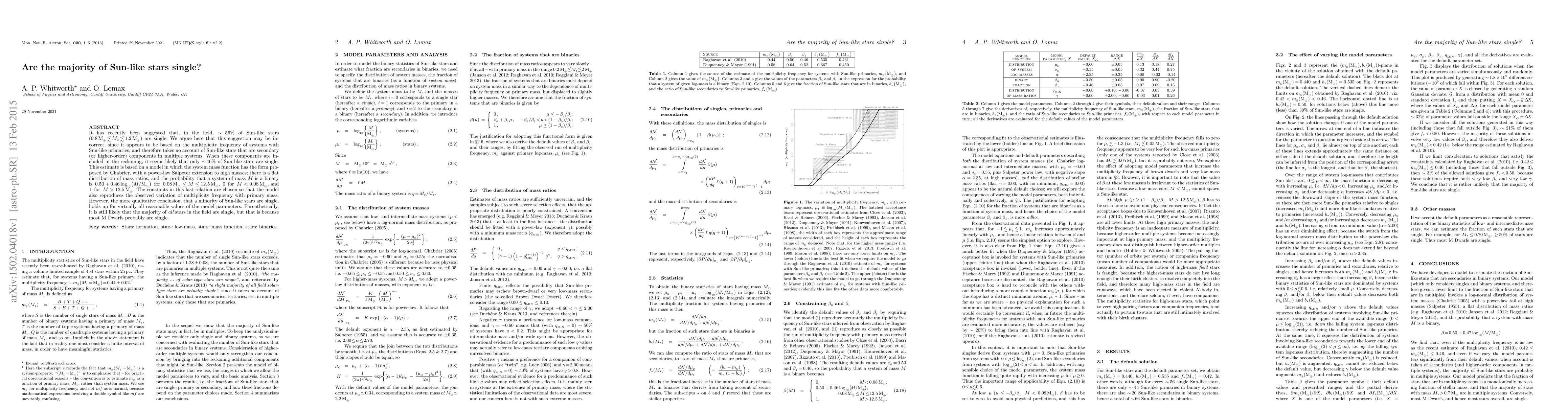 The paper argues that the majority of Sun-like stars are likely not single, estimating that only about 46% are single when considering Sun-like stars as secondary components in multiple systems. The conclusion holds across various reasonable model parameters.