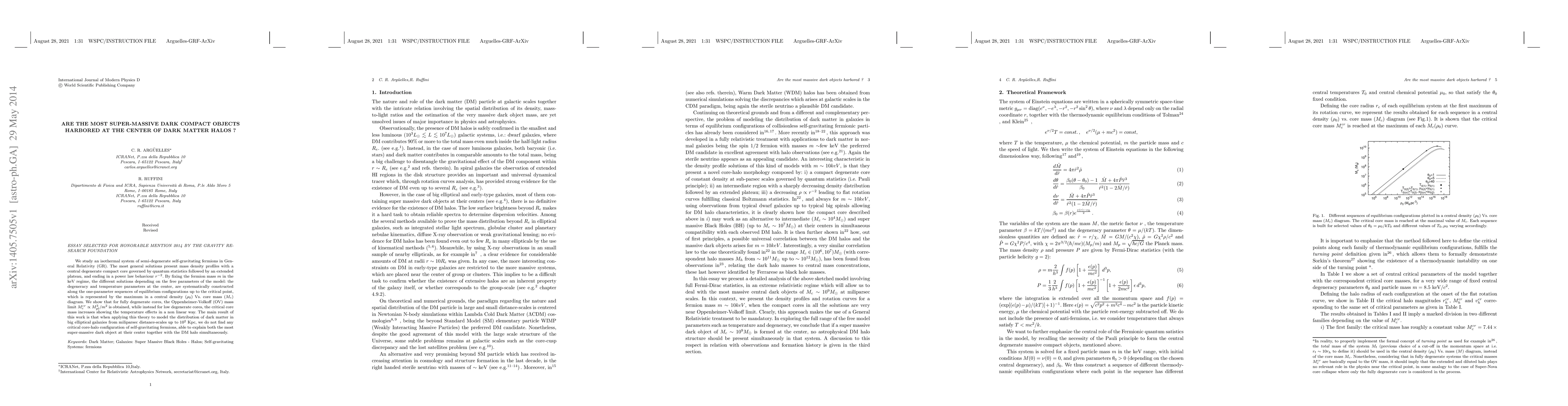 Essay selected for Honorable mention 2014 by the Gravity Research Foundation. We study an isothermal system of semi-degenerate self-gravitating fermions in General Relativity (GR). The most general solutions present mass density profiles with a central degenerate compact core governed by quantum statistics followed by an extended plateau, and ending in a power law behaviour $r^{-2}$. By fixing the fermion mass $m$ in the keV regime, the different solutions depending on the free parameters of the model: the degeneracy and temperature parameters at the center, are systematically constructed along the one-parameter sequences of equilibrium configurations up to the critical point, which is represented by the maximum in a central density ($\rho_0$) Vs. core mass ($M_c$) diagram. We show that for fully degenerate cores, the Oppenheimer-Volkoff (OV) mass limit $M_{c}^{cr}\propto M_{pl}^3/m^2$ is obtained, while instead for low degenerate cores, the critical core mass increases showing the temperature effects in a non linear way. The main result of this work is that when applying this theory to model the distribution of dark matter in big elliptical galaxies from miliparsec distance-scales up to $10^2$ Kpc, we do not find any critical core-halo configuration of self-gravitating fermions, able to explain both the most super-massive dark object at their center together with the DM halo simultaneously.