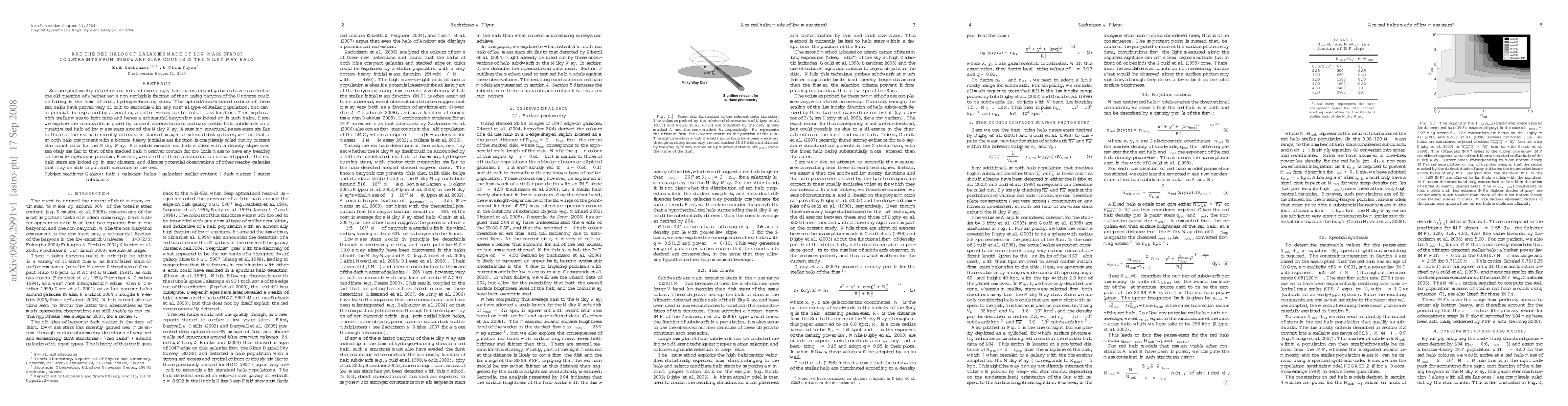 Surface photometry detections of red and exceedingly faint halos around galaxies have resurrected the old question of whether some non-negligible fraction of the missing baryons of the Universe could be hiding in the form of faint, hydrogen-burning stars. The optical/near-infrared colours of these red halos have proved very difficult to reconcile with any normal type of stellar population, but can in principle be explained by advocating a bottom-heavy stellar initial mass function. This implies a high stellar mass-to-light ratio and hence a substantial baryonic mass locked up in such halos. Here, we explore the constraints imposed by current observations of ordinary stellar halo subdwarfs on a putative red halo of low-mass stars around the Milky Way. Assuming structural parameters similar to those of the red halo recently detected in stacked images of external disk galaxies, we find that a smooth halo component with a bottom-heavy initial mass function is completely ruled out by current star count data for the Milky Way. All viable smooth red halo models with a density slope even remotely similar to that of the stacked halo moreover contain far too little mass to have any bearing on the missing-baryon problem. However, we note that these constraints can be sidestepped if the red halo stars are locked up in star clusters, and discuss potential observations of other nearby galaxies that may be able to put such scenarios to the test.
