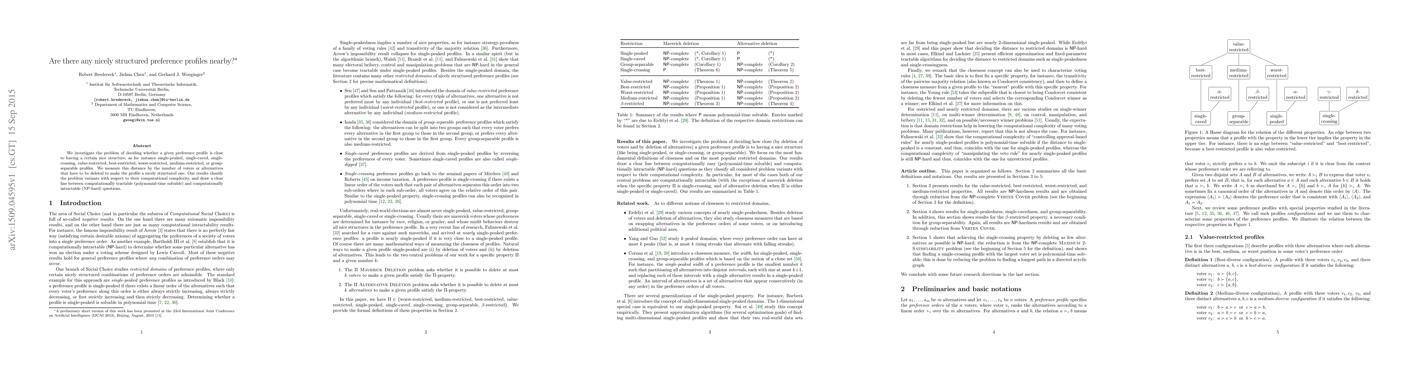 We investigate the problem of deciding whether a given preference profile is close to having a certain nice structure, as for instance single-peaked, single-caved, single-crossing, value-restricted, best-restricted, worst-restricted, medium-restricted, or group-separable profiles. We measure this distance by the number of voters or alternatives that have to be deleted to make the profile a nicely structured one. Our results classify the problem variants with respect to their computational complexity, and draw a clear line between computationally tractable (polynomial-time solvable) and computationally intractable (NP-hard) questions.