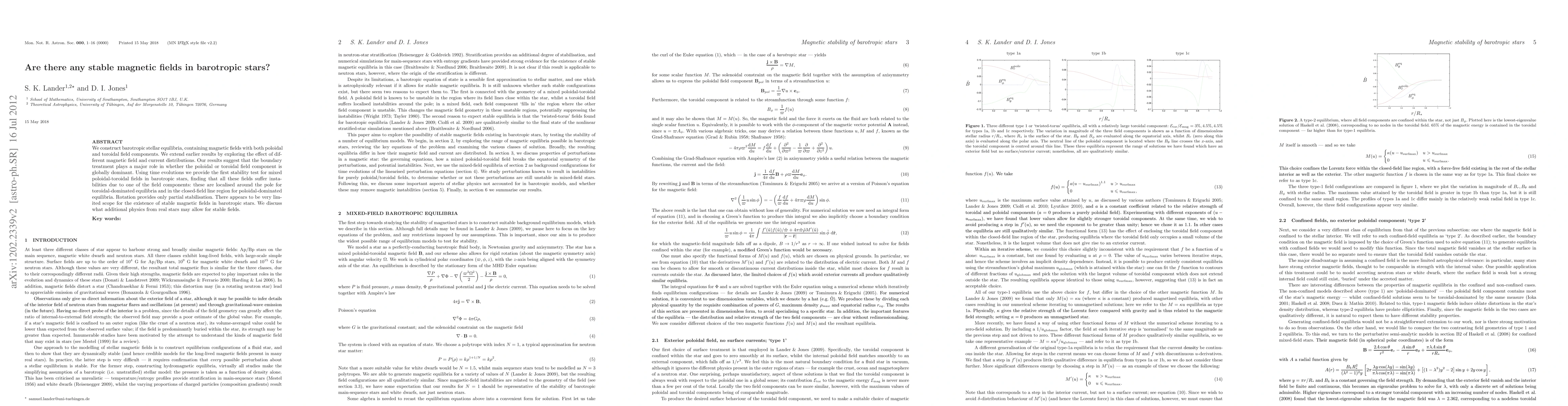 This paper investigates the stability of magnetic fields in barotropic stars, finding that mixed poloidal-toroidal fields are unstable due to instabilities localized around the pole or in the closed-field line region. Rotation offers only partial stabilization, suggesting limited potential for stable magnetic fields in such stars.