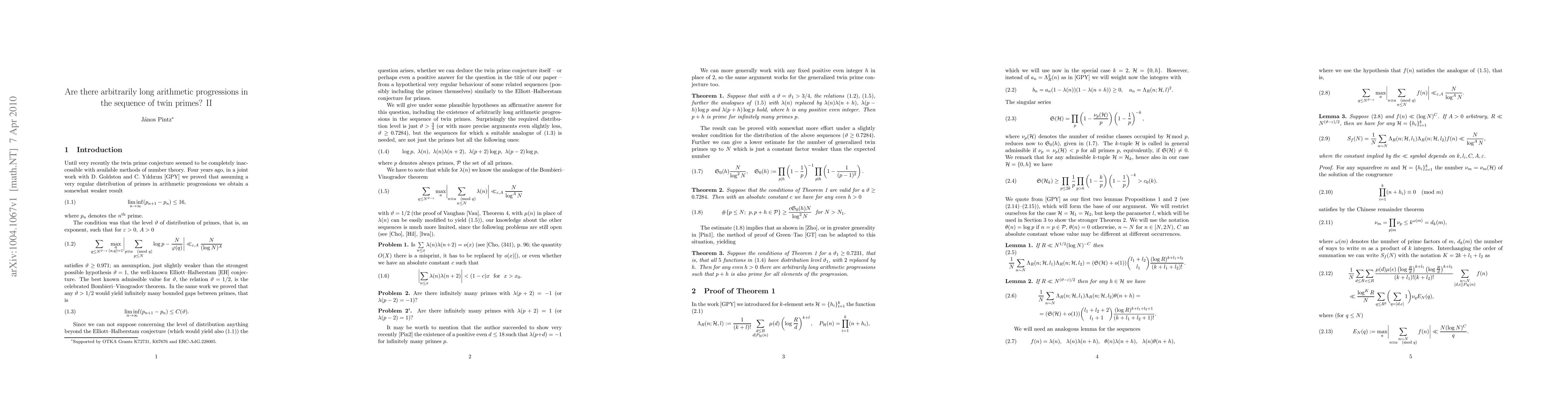 This paper demonstrates that under certain unproved hypotheses, if additional sequences share a common distribution level with primes beyond 0.7231, then there exist arbitrarily long arithmetic progressions of primes where each prime plus a fixed even integer also remains prime. Specifically, for twin primes (h=2), this suggests the plausibility of long sequences of twin primes.