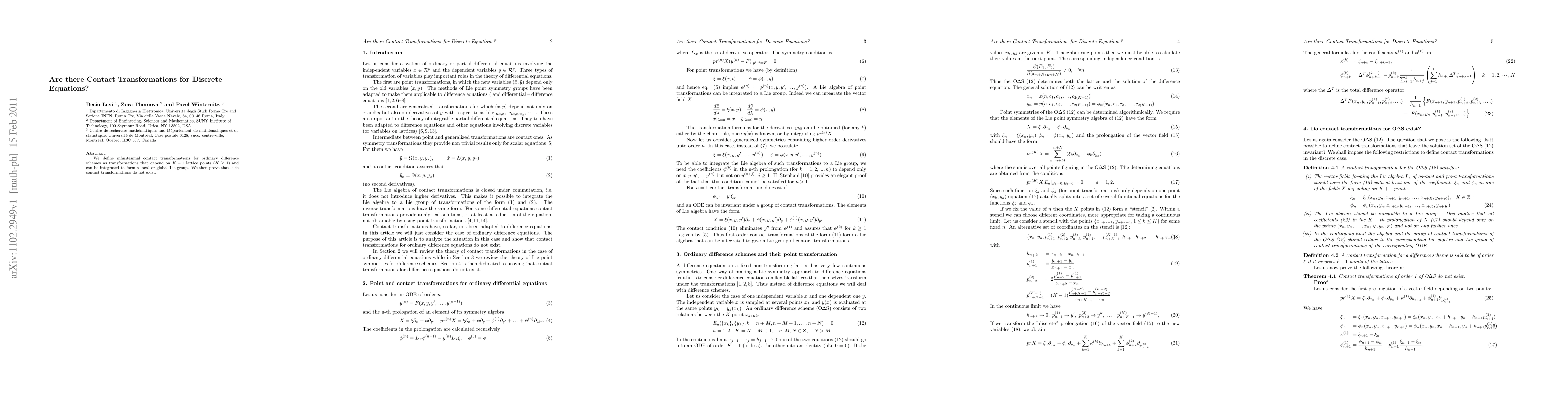 The study provides a rigorous mathematical analysis of the existence of contact transformations for discrete difference equations and establishes a 'no-go theorem' for their existence.