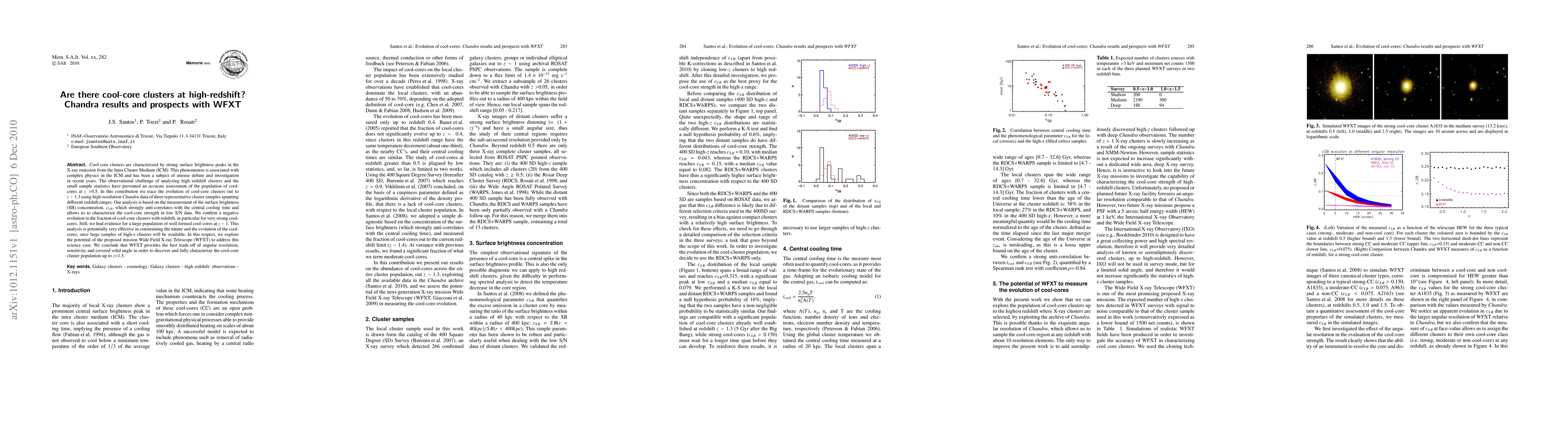 This paper investigates the evolution of cool-core clusters at high redshifts using Chandra data, confirming a decrease in the fraction of cool-cores with increasing redshift. It also explores the potential of the WFXT mission to study these clusters up to z=1.5, highlighting its optimal balance of resolution, sensitivity, and coverage.