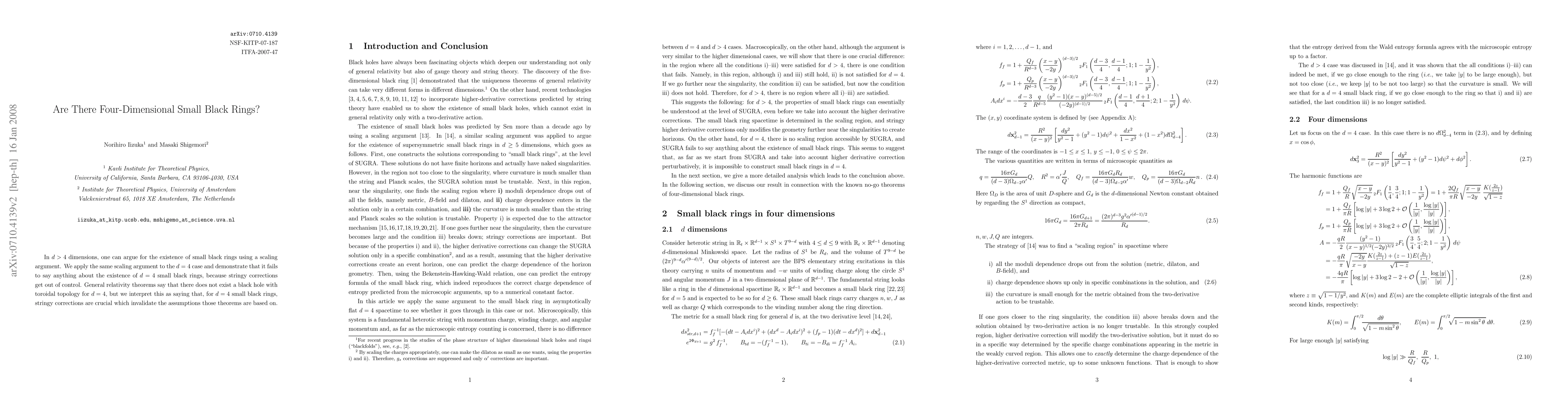 Researchers investigate the possibility of 4-dimensional small black rings using a scaling argument, finding that stringy corrections invalidate assumptions based on general relativity theorems, suggesting their existence is crucial.