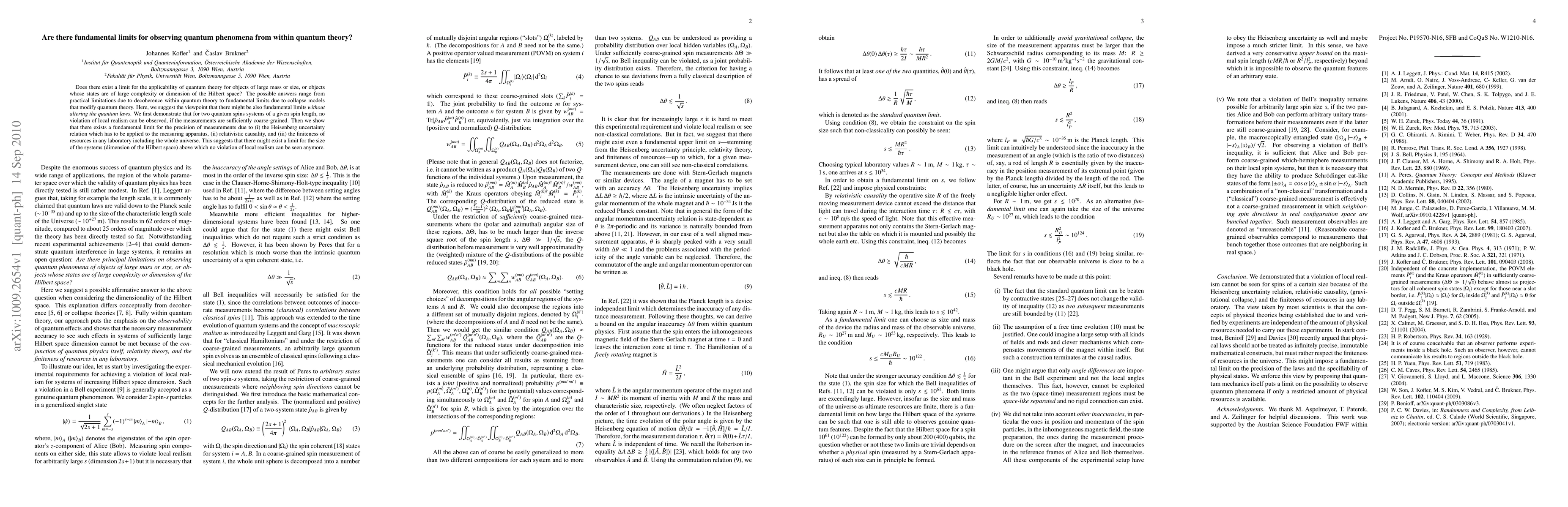 Does there exist a limit for the applicability of quantum theory for objects of large mass or size, or objects whose states are of large complexity or dimension of the Hilbert space? The possible answers range from practical limitations due to decoherence within quantum theory to fundamental limits due to collapse models that modify quantum theory. Here, we suggest the viewpoint that there might be also fundamental limits without altering the quantum laws. We first demonstrate that for two quantum spins systems of a given spin length, no violation of local realism can be observed, if the measurements are sufficiently coarse-grained. Then we show that there exists a fundamental limit for the precision of measurements due to (i) the Heisenberg uncertainty relation which has to be applied to the measuring apparatus, (ii) relativistic causality, and (iii) the finiteness of resources in any laboratory including the whole universe. This suggests that there might exist a limit for the size of the systems (dimension of the Hilbert space) above which no violation of local realism can be seen anymore.