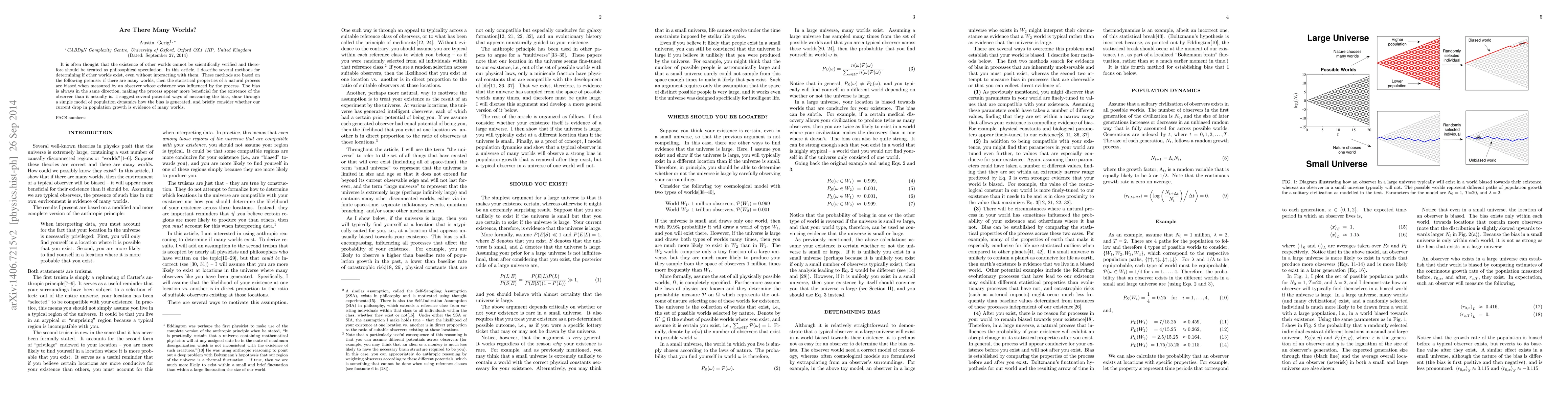 It is often thought that the existence of other worlds cannot be scientifically verified and therefore should be treated as philosophical speculation. In this article, I describe several methods for determining if other worlds exist, even without interacting with them. These methods are based on the following premise: if there are many worlds, then the statistical properties of a natural process are biased when measured by an observer whose existence was influenced by the process. The bias is always in the same direction, making the process appear more beneficial for the existence of the observer than it actually is. I suggest several potential ways of measuring the bias, show through a simple model of population dynamics how the bias is generated, and briefly consider whether our current drop in population growth is evidence of many worlds.
