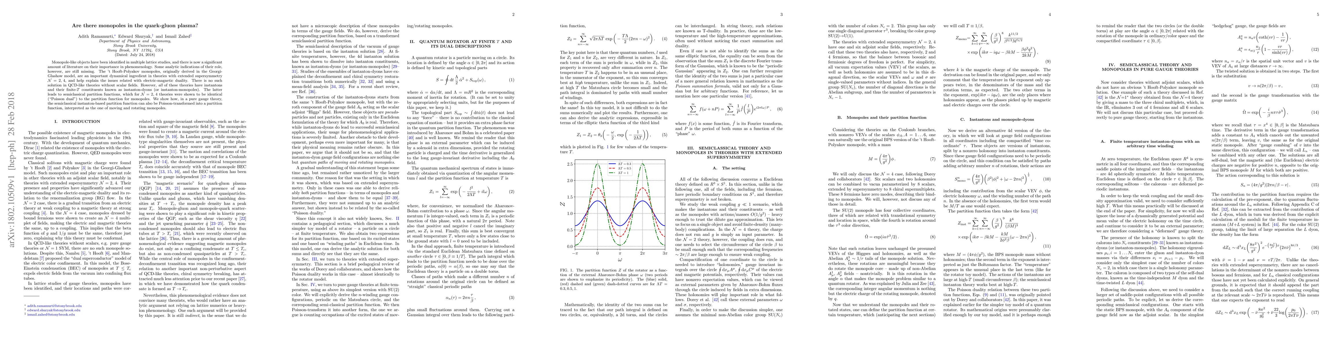 This paper investigates the presence of monopole-like objects in the quark-gluon plasma, identifying instanton-dyons as potential candidates. It demonstrates that the semiclassical partition function of a pure gauge theory can be transformed into one that represents moving and rotating monopoles, suggesting a possible connection to electric-magnetic duality.
