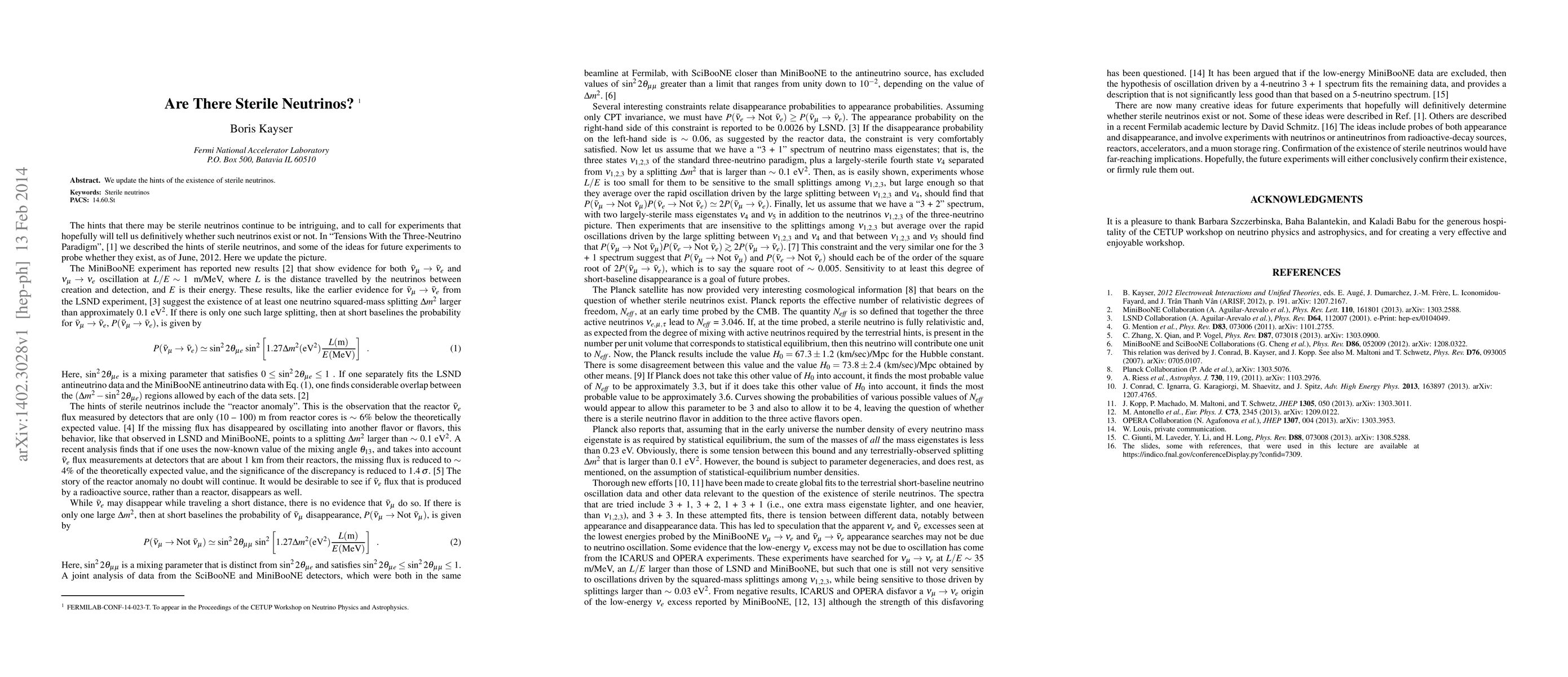Summary: This paper revisits and updates the evidence suggesting the potential existence of sterile neutrinos, which could provide new insights into particle physics beyond the Standard Model.
