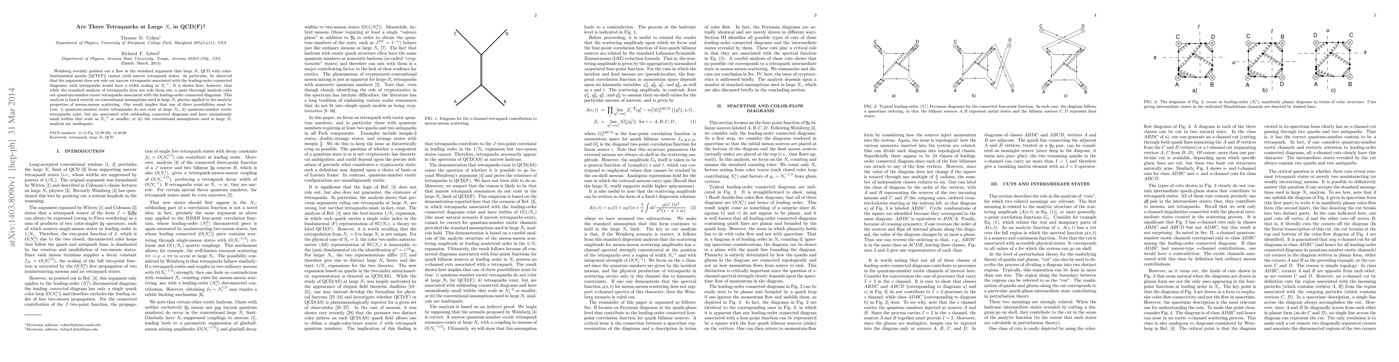 Weinberg recently pointed out a flaw in the standard argument that large $N_c$ QCD with color-fundamental quarks [QCD(F)] cannot yield narrow tetraquark states. In particular, he observed that the argument does not rule out narrow tetraquarks associated with the leading-order connected diagrams; such tetraquarks would have a width scaling as $N_c^{-1}$. It is shown here, however, that while the standard analysis of tetraquarks does not rule them out, a more thorough analysis rules out quantum-number exotic tetraquarks associated with the leading-order connected diagrams. This analysis is based entirely on conventional assumptions used in large $N_c$ physics applied to the analytic properties of meson-meson scattering. Our result implies that one of three possibilities must be true: i) quantum-number exotic tetraquarks do not exist at large $N_c$; ii) quantum-number exotic tetraquarks exist, but are associated with subleading connected diagrams and have anomalously small widths that scale as $N_c^{-2}$ or smaller; or iii) the conventional assumptions used in large $N_c$ analysis are inadequate.