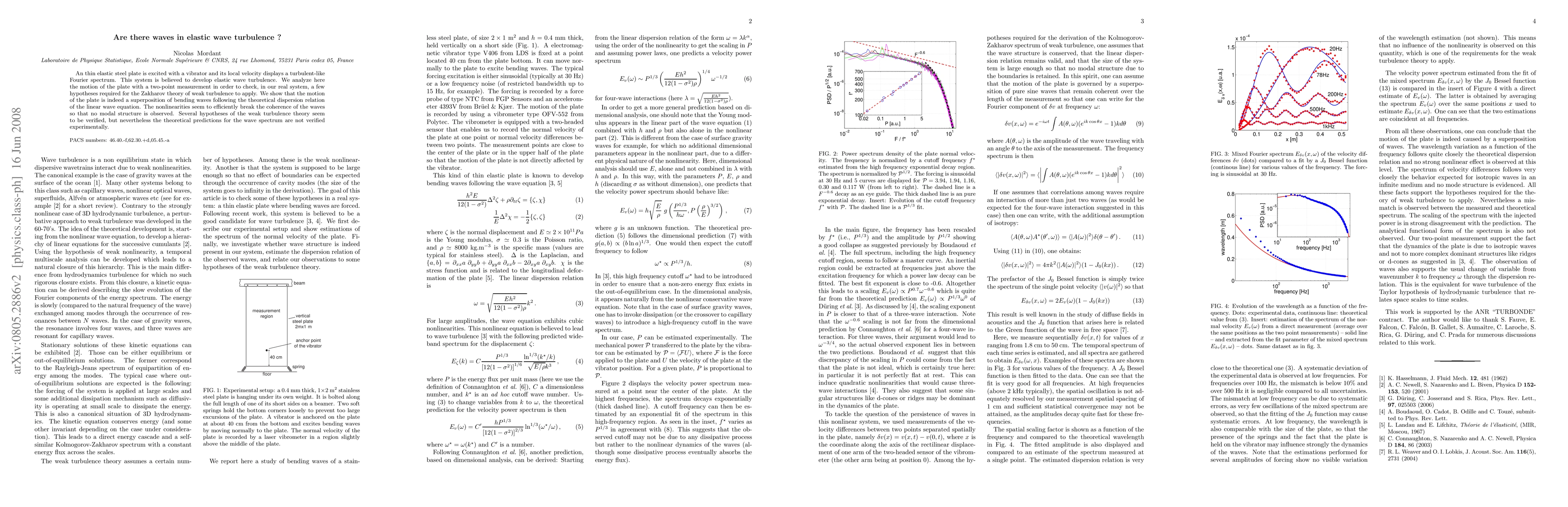 An thin elastic steel plate is excited with a vibrator and its local velocity displays a turbulent-like Fourier spectrum. This system is believed to develop elastic wave turbulence. We analyze here the motion of the plate with a two-point measurement in order to check, in our real system, a few hypotheses required for the Zakharov theory of weak turbulence to apply. We show that the motion of the plate is indeed a superposition of bending waves following the theoretical dispersion relation of the linear wave equation. The nonlinearities seem to efficiently break the coherence of the waves so that no modal structure is observed. Several hypotheses of the weak turbulence theory seem to be verified, but nevertheless the theoretical predictions for the wave spectrum are not verified experimentally.