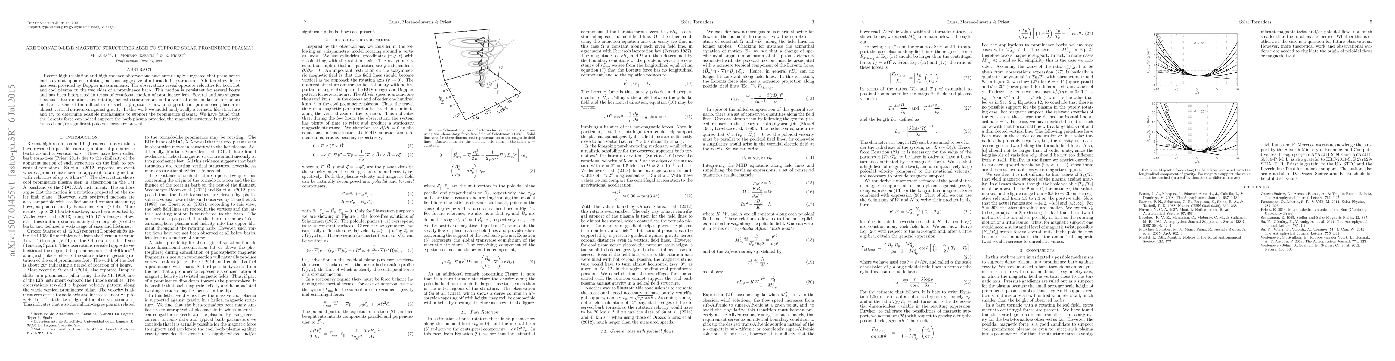 This paper investigates whether tornado-like magnetic structures can support solar prominence plasma, finding that the Lorentz force can sustain the cool plasma if the magnetic structure is sufficiently twisted or significant poloidal flows are present. The study uses high-resolution observations to model these rotational helical structures.