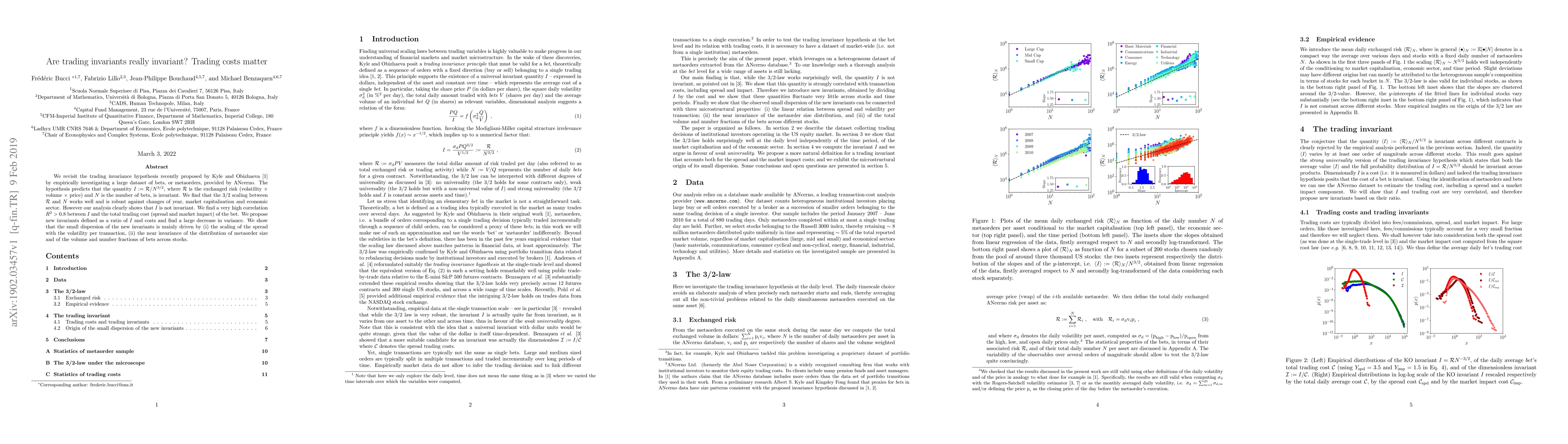 We revisit the trading invariance hypothesis recently proposed by Kyle and Obizhaeva by empirically investigating a large dataset of bets, or metaorders, provided by ANcerno. The hypothesis predicts that the quantity $I:=\ri/N^{3/2}$, where $\ri$ is the exchanged risk (volatility $\times$ volume $\times$ price) and $N$ is the number of bets, is invariant. We find that the $3/2$ scaling between $\ri$ and $N$ works well and is robust against changes of year, market capitalisation and economic sector. However our analysis clearly shows that $I$ is not invariant. We find a very high correlation $R^2>0.8$ between $I$ and the total trading cost (spread and market impact) of the bet. We propose new invariants defined as a ratio of $I$ and costs and find a large decrease in variance. We show that the small dispersion of the new invariants is mainly driven by (i) the scaling of the spread with the volatility per transaction, (ii) the near invariance of the distribution of metaorder size and of the volume and number fractions of bets across stocks.