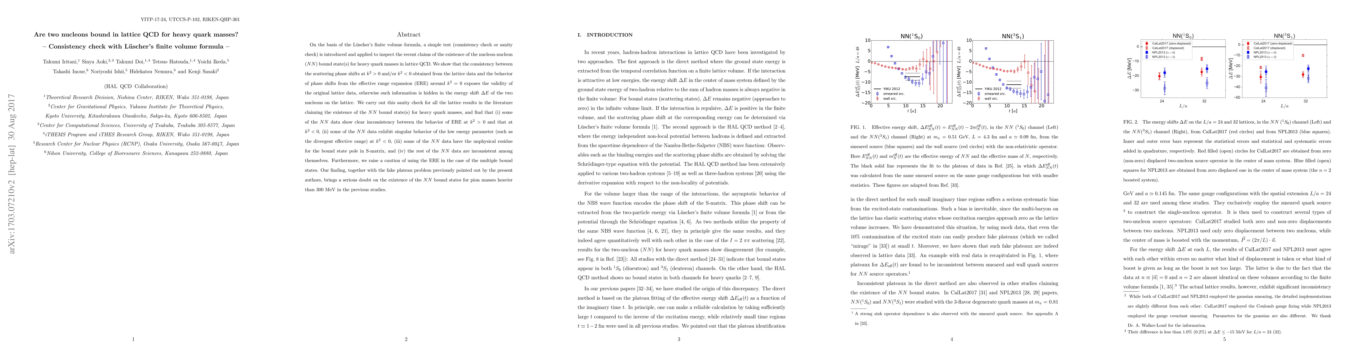 On the basis of the L\"uscher's finite volume formula, a simple test (consistency check or sanity check) is introduced and applied to inspect the recent claims of the existence of the nucleon-nucleon ($NN$) bound state(s) for heavy quark masses in lattice QCD. We show that the consistency between the scattering phase shifts at $k^2 > 0$ and/or $k^2 < 0$ obtained from the lattice data and the behavior of phase shifts from the effective range expansion (ERE) around $k^2=0$ exposes the validity of the original lattice data, otherwise such information is hidden in the energy shift $\Delta E$ of the two nucleons on the lattice. We carry out this sanity check for all the lattice results in the literature claiming the existence of the $NN$ bound state(s) for heavy quark masses, and find that (i) some of the $NN$ data show clear inconsistency between the behavior of ERE at $k^2 > 0$ and that at $k^2 < 0$, (ii) some of the $NN$ data exhibit singular behavior of the low energy parameter (such as the divergent effective range) at $k^2<0$, (iii) some of the $NN$ data have the unphysical residue for the bound state pole in S-matrix, and (iv) the rest of the $NN$ data are inconsistent among themselves. Furthermore, we raise a caution of using the ERE in the case of the multiple bound states. Our finding, together with the fake plateau problem previously pointed out by the present authors, brings a serious doubt on the existence of the $NN$ bound states for pion masses heavier than 300 MeV in the previous studies.