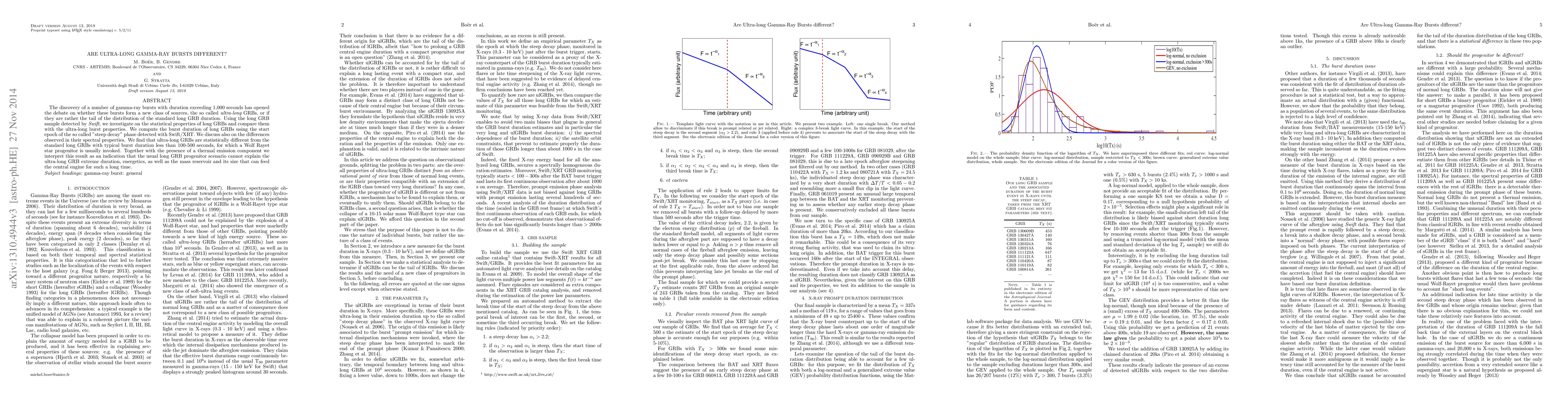 This paper investigates whether ultra-long gamma-ray bursts (GRBs), with durations exceeding 1,000 seconds, represent a distinct class or merely extend the duration range of standard long GRBs. The findings suggest that ultra-long GRBs exhibit statistical and spectral differences from typical long GRBs, indicating a need for alternative progenitor models to explain their extreme energetics.
