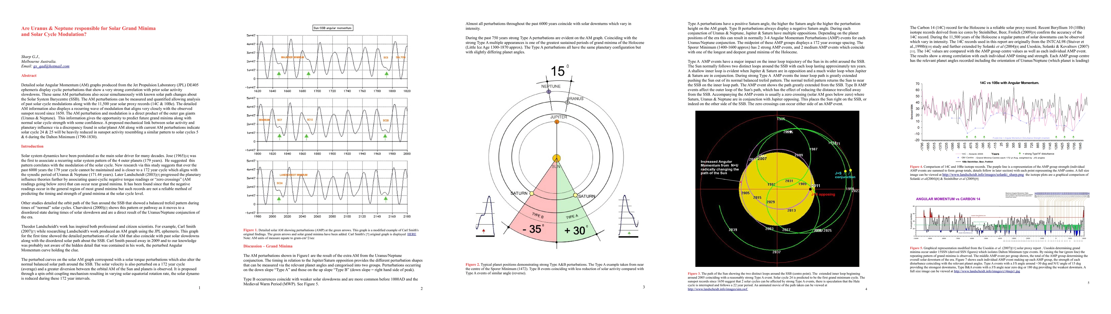This paper investigates the influence of Uranus and Neptune on solar activity, finding strong correlations between their angular momentum perturbations and solar minima and cycle modulations. Predictions suggest reduced sunspot activity in solar cycles 24 and 25, similar to the Dalton Minimum.