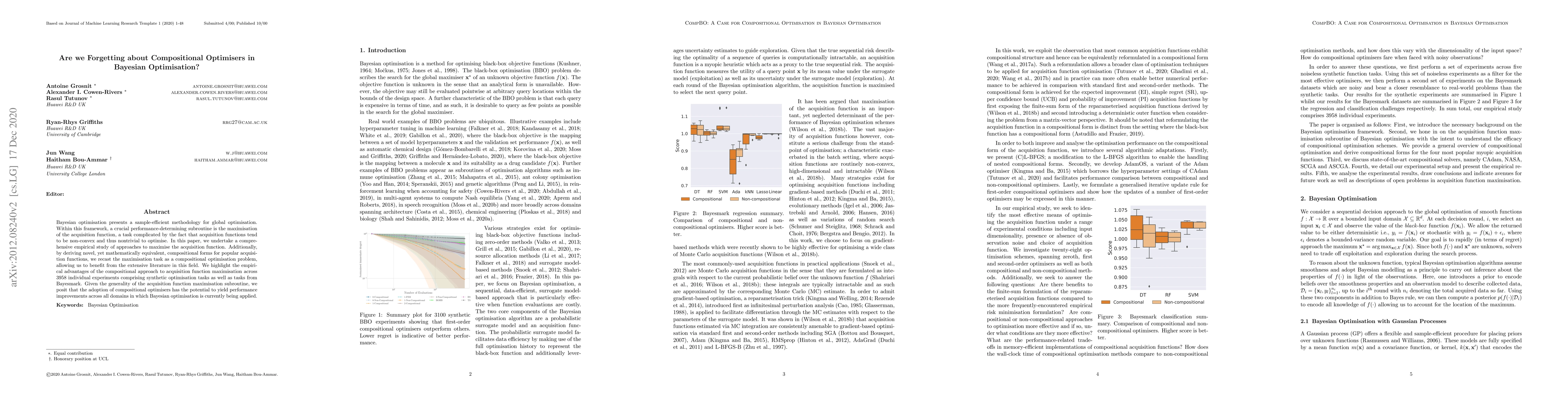 This paper explores the use of compositional optimisers in Bayesian optimisation to enhance the maximisation of acquisition functions, demonstrating significant empirical advantages through extensive experiments. It argues that adopting this approach could improve performance across various domains relying on Bayesian optimisation.