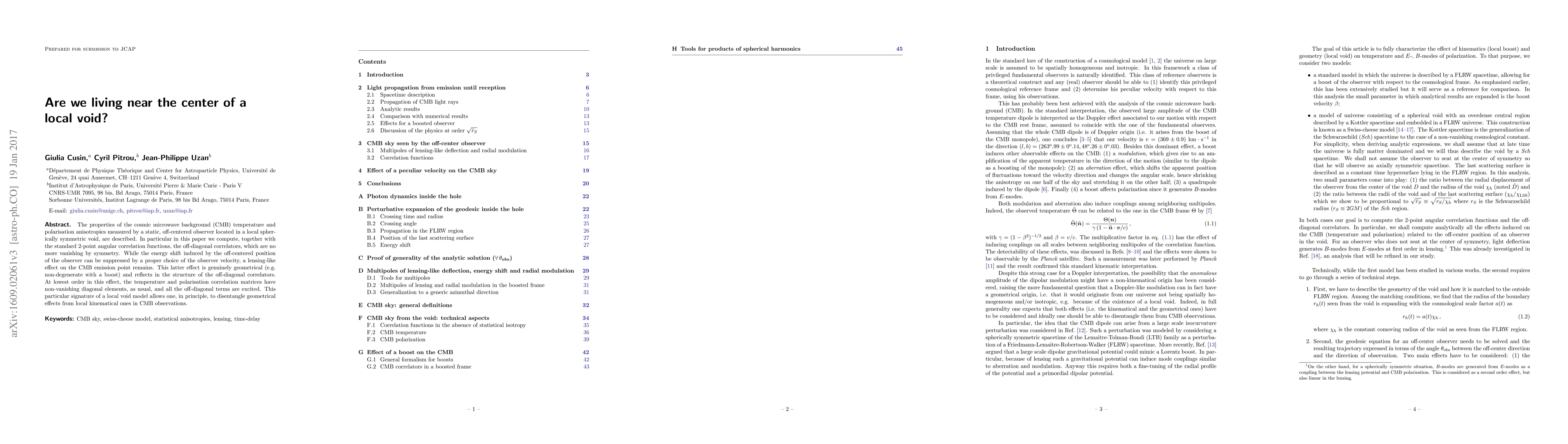 This paper investigates the cosmic microwave background (CMB) anisotropies from an off-centered observer in a local spherical void, revealing a geometrical lensing effect on CMB emission. This effect, distinct from kinematical influences, is detectable through non-vanishing off-diagonal correlators in temperature and polarization correlation matrices.