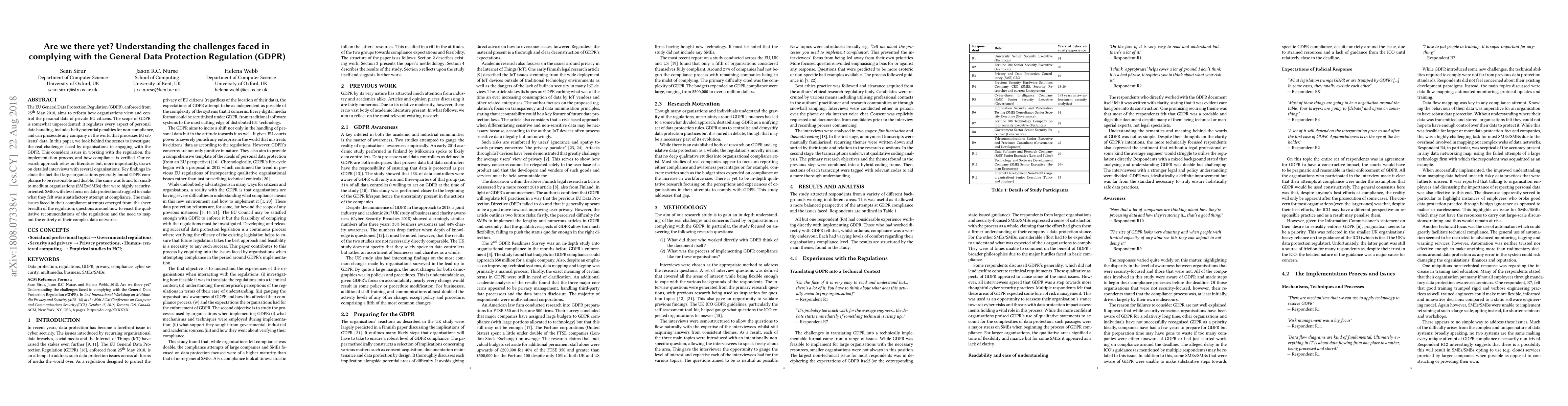 This paper investigates the challenges faced by organizations in complying with the GDPR, revealing that large and security-focused SMEs generally find compliance manageable, while others struggle due to the regulation's extensive scope, its qualitative recommendations, and the complexity of mapping out their data networks.