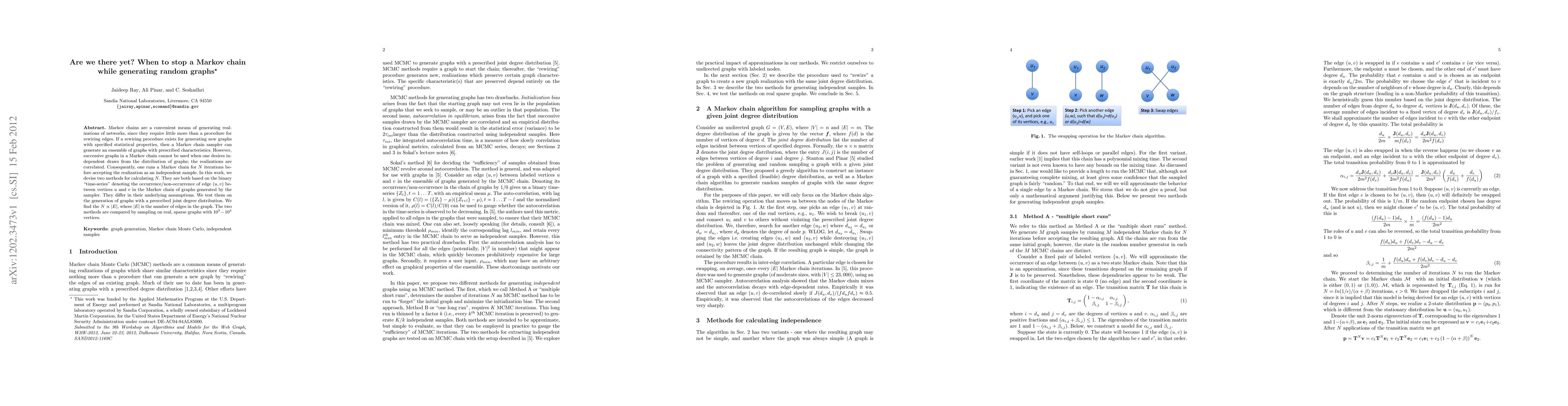 This paper proposes two methods to determine the optimal number of iterations, N, for a Markov chain to generate independent random graphs with a specified joint degree distribution. The methods are tested on sparse graphs, showing that N is proportional to the number of edges, |E|.
