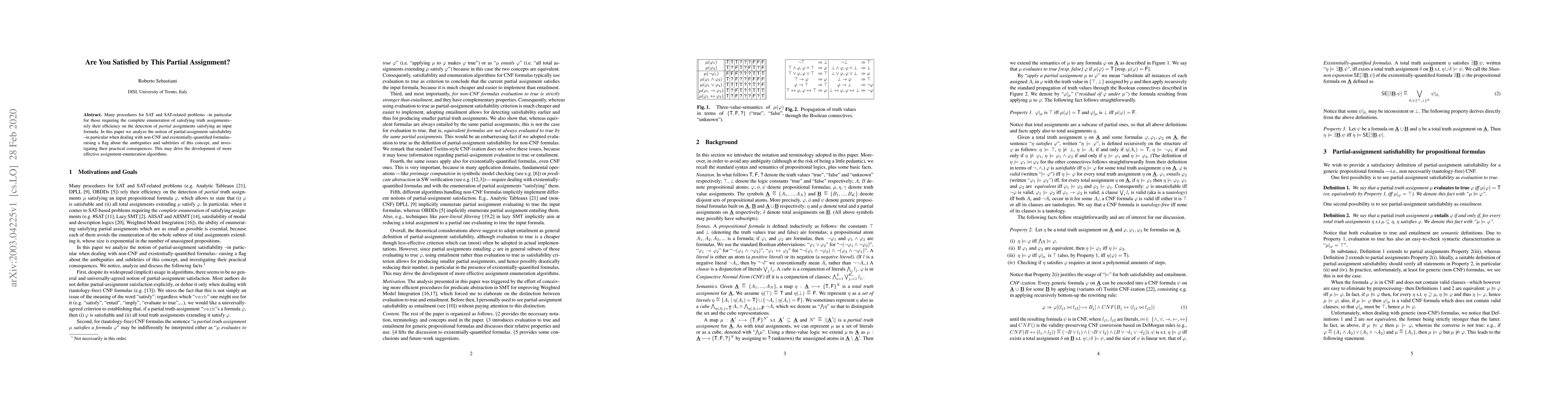This paper investigates the concept of partial-assignment satisfiability in non-CNF formulas with existential quantifiers, highlighting ambiguities and practical consequences for assignment-enumeration algorithms.