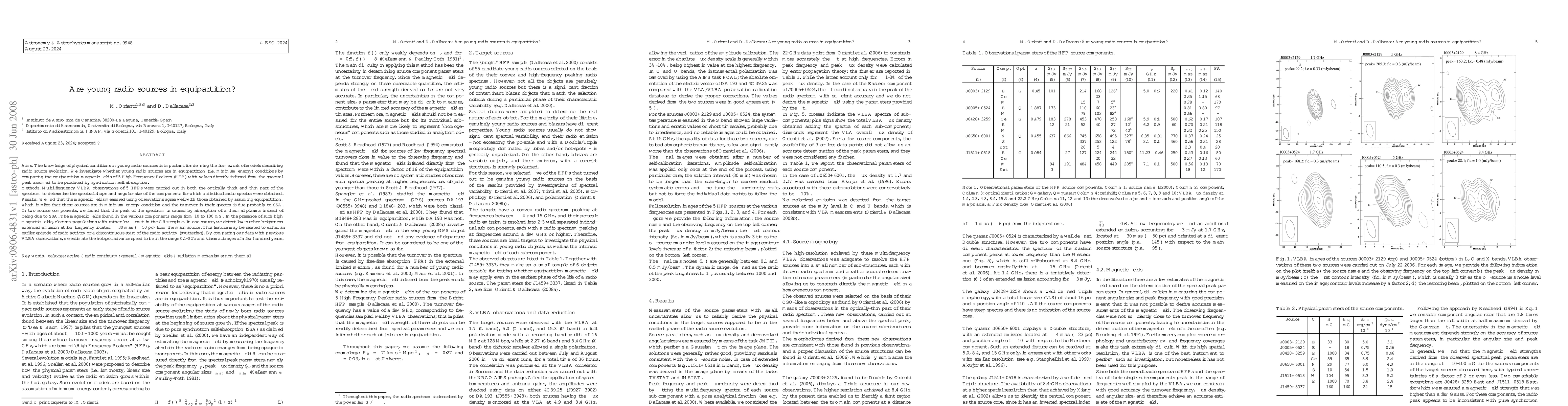 Young radio sources exhibit magnetic fields consistent with equipartition conditions, suggesting they are in minimum energy states and their spectra turn over due to synchrotron self-absorption.