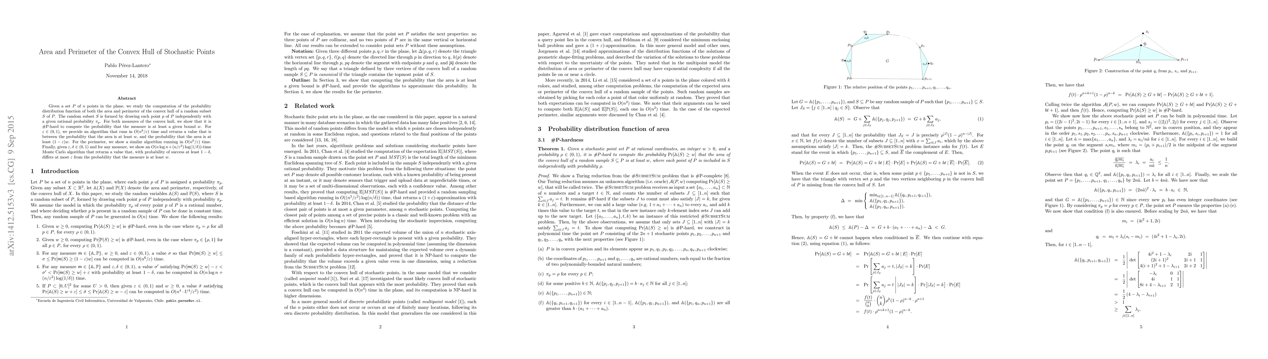 Researchers study the probability distribution of convex hull area and perimeter in a set of points, finding that computing exact probabilities is #P-hard, but developing algorithms to estimate these probabilities within given bounds are possible.