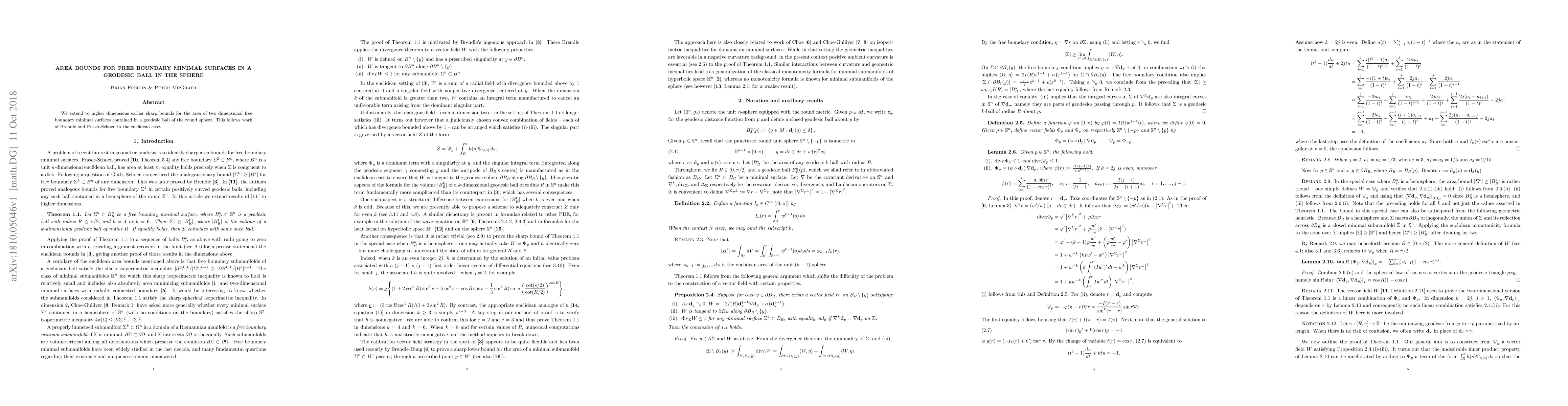 Summary: This paper extends sharp area bounds for higher-dimensional free boundary minimal surfaces within geodesic balls of a round sphere, building on previous results from Brendle and Fraser-Schoen in the Euclidean context.