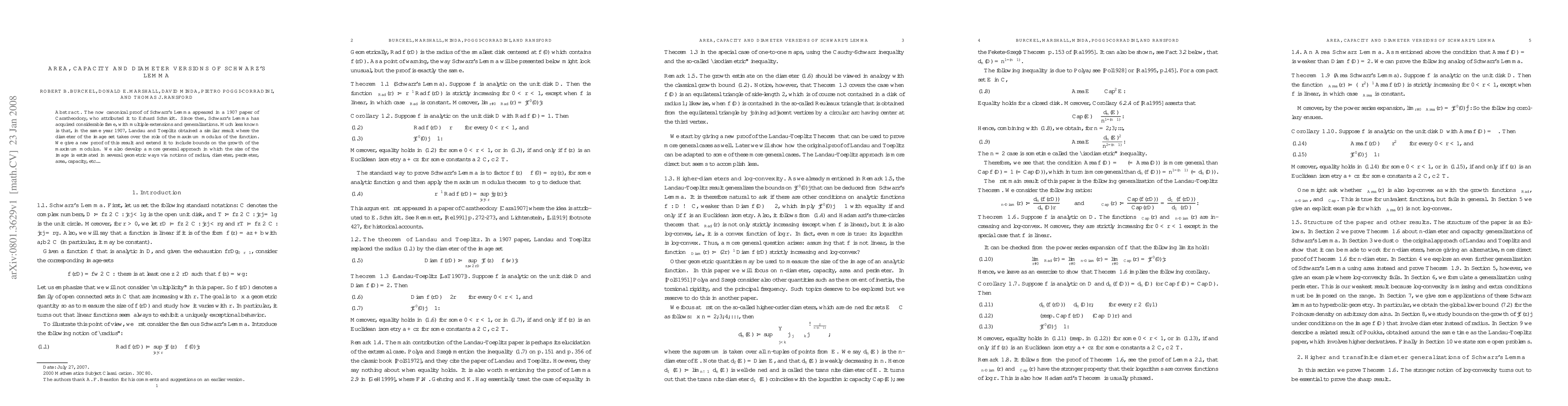The now canonical proof of Schwarz's Lemma appeared in a 1907 paper of Carath\'eodory, who attributed it to Erhard Schmidt. Since then, Schwarz's Lemma has acquired considerable fame, with multiple extensions and generalizations. Much less known is that, in the same year 1907, Landau and Toeplitz obtained a similar result where the diameter of the image set takes over the role of the maximum modulus of the function. We give a new proof of this result and extend it to include bounds on the growth of the maximum modulus. We also develop a more general approach in which the size of the image is estimated in several geometric ways via notions of radius, diameter, perimeter, area, capacity, etc...