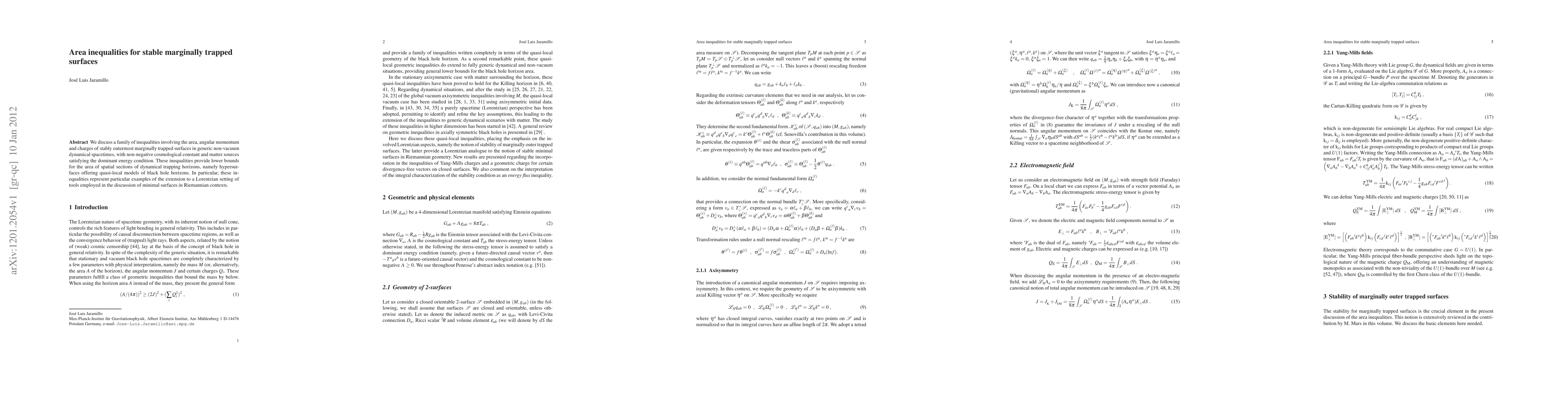 We discuss a family of inequalities involving the area, angular momentum and charges of stably outermost marginally trapped surfaces in generic non-vacuum dynamical spacetimes, with non-negative cosmological constant and matter sources satisfying the dominant energy condition. These inequalities provide lower bounds for the area of spatial sections of dynamical trapping horizons, namely hypersurfaces offering quasi-local models of black hole horizons. In particular, these inequalities represent particular examples of the extension to a Lorentzian setting of tools employed in the discussion of minimal surfaces in Riemannian contexts.
