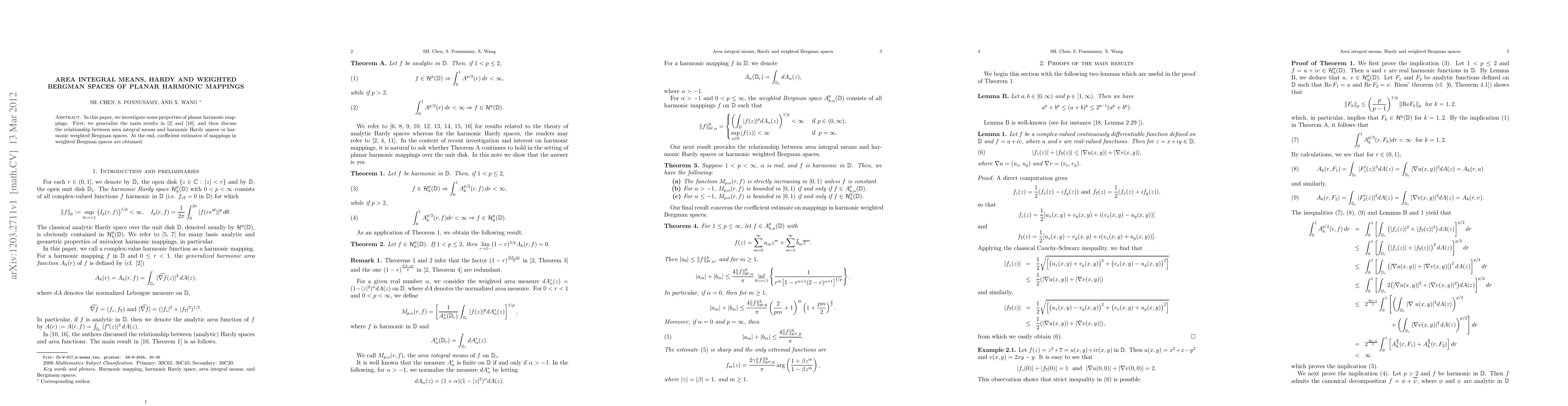 This paper generalizes results from previous studies on planar harmonic mappings, exploring the connections between area integral means and harmonic Hardy and weighted Bergman spaces, and deriving coefficient estimates for mappings in the latter.
