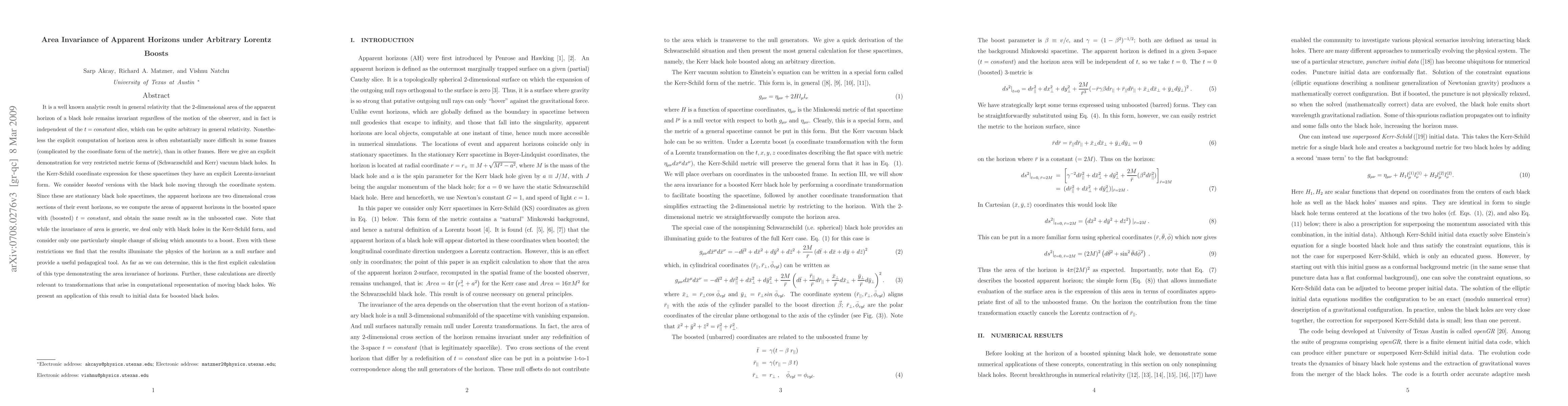 This paper demonstrates the area invariance of apparent horizons in boosted Schwarzschild and Kerr black hole spacetimes, showing that the horizon area remains constant regardless of the observer's motion. The calculations are performed using the Kerr-Schild coordinate system, providing a useful pedagogical tool and relevant for computational representations of moving black holes.