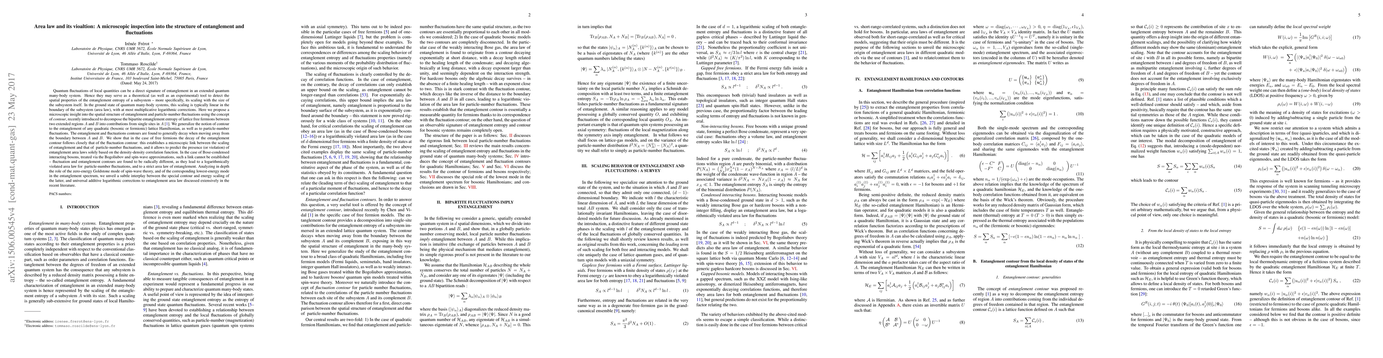 Quantum fluctuations of local quantities can be a direct signature of entanglement in an extended quantum many-body system. Hence they may serve as a theoretical (as well as an experimental) tool to detect the spatial properties of the entanglement entropy of a subsystem. In the ground state of quantum many-body systems, its scaling is typically linear in the boundary of the subsystem (area law). Here we propose a microscopic insight into the spatial structure of entanglement and fluctuations using the concept of \emph{contour}, recently introduced to decompose the bipartite entanglement entropy of lattice free fermions between two extended regions $A$ and $B$ into contributions from single sites in $A$. We generalize the notion of contour to the entanglement of any quadratic (bosonic or fermionic) lattice Hamiltonian, as well as to particle-number fluctuations. The entanglement and fluctuations contours are found to generally decay when moving away from the boundary between $A$ and $B$. We show that in the case of free fermions the decay of the entanglement contour follows closely that of the fluctuation contour. In the case of Bose-condensed interacting bosons, treated via the Bogoliubov and spin-wave approximations, such a link cannot be established -- fluctuation and entanglement contours are found to be radically different, as they lead to a logarithmically violated area law for fluctuations, and to a strict area law of entanglement. Analyzing in depth the role of the zero-energy Goldstone mode of spin-wave theory, and of the corresponding lowest-energy mode in the entanglement spectrum, we unveil a subtle interplay between the special contour and energy scaling of the latter, and universal additive logarithmic corrections to entanglement area law discussed extensively in the recent literature.