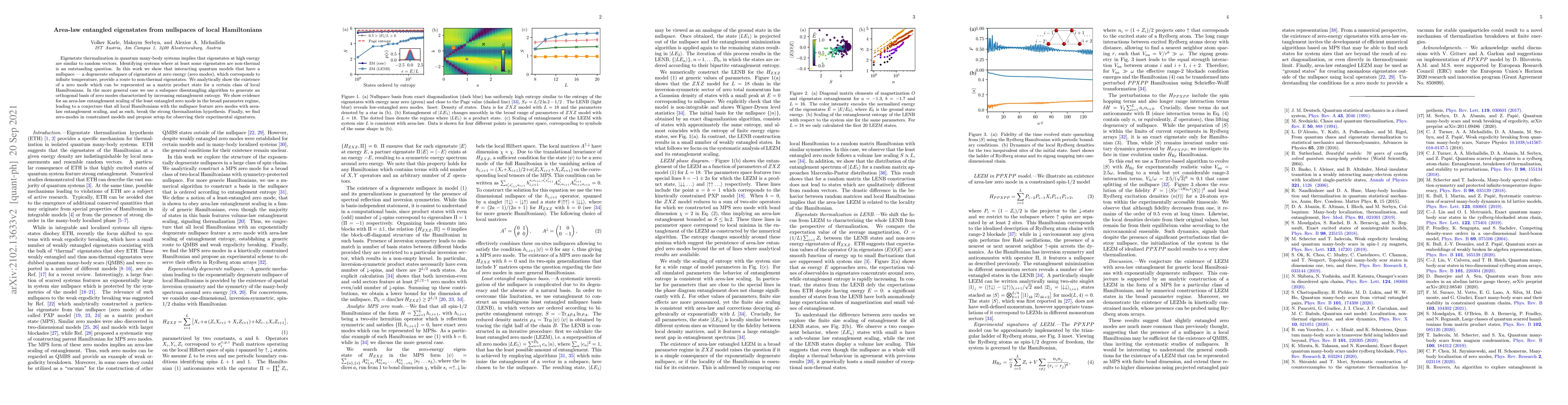 This paper demonstrates that quantum systems with a nullspace of local Hamiltonians, featuring degenerate zero-energy eigenstates, can host non-thermal eigenstates. It proposes a method to generate these eigenstates using matrix product states and subspace disentangling algorithms, and conjectures that these zero modes exhibit area-law entanglement scaling, thereby challenging the strong thermalization hypothesis.