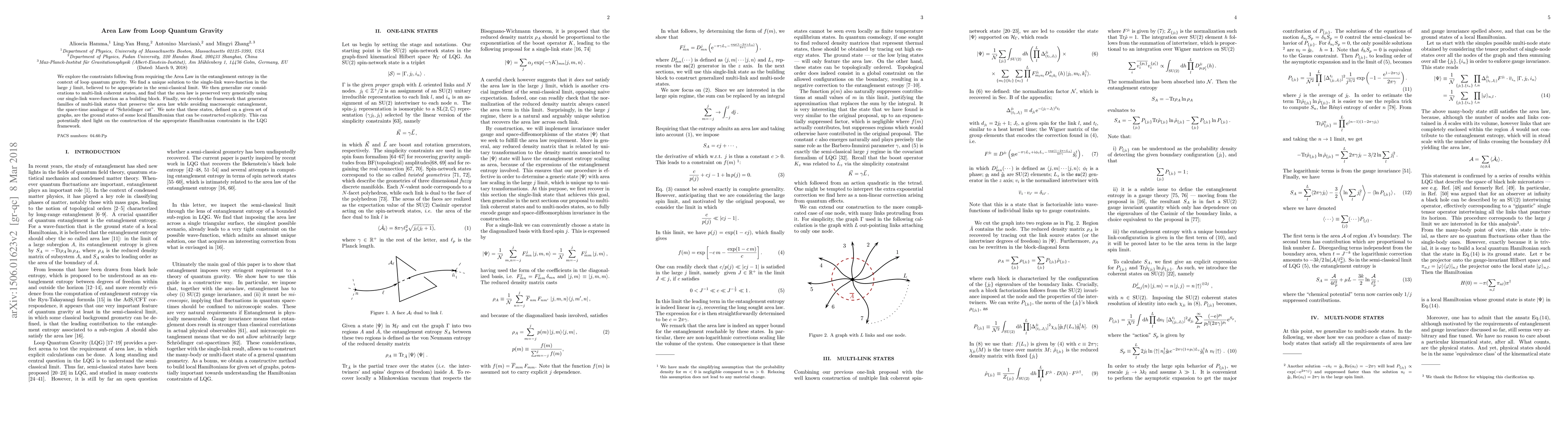 We explore the constraints following from requiring the Area Law in the entanglement entropy in the context of loop quantum gravity. We find a unique solution to the single link wave-function in the large j limit, believed to be appropriate in the semi-classical limit. We then generalize our considerations to multi-link coherent states, and find that the area law is preserved very generically using our single link wave-function as a building block. Finally, we develop the framework that generates families of multi-link states that preserve the area law while avoiding macroscopic entanglement, the space-time analogue of "Schroedinger cat". We note that these states, defined on a given set of graphs, are the ground states of some local Hamiltonian that can be constructed explicitly. This can potentially shed light on the construction of the appropriate Hamiltonian constraints in the LQG framework.
